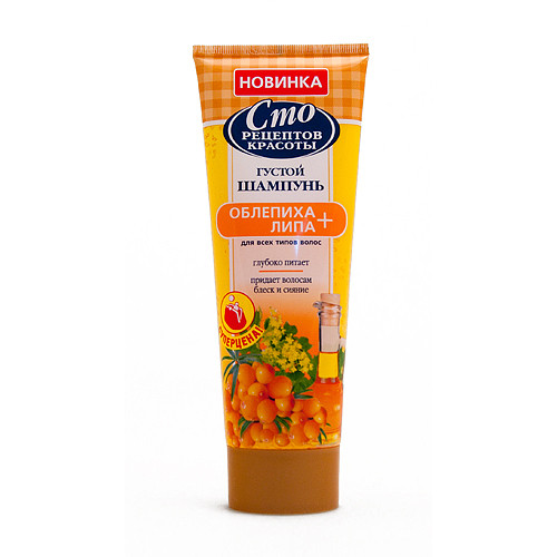 Шампунь густой "100 рецептов красоты" Облепиха и Липа для сухих волос, 200мл