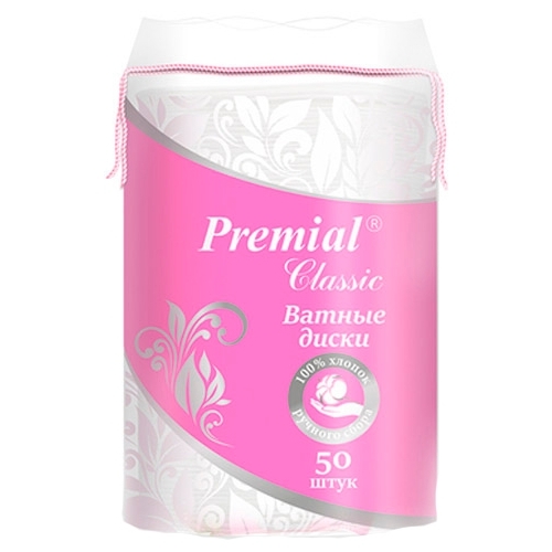 Ватные диски Premial Classic косметические с прошитыми краями