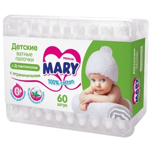 Ватные палочки Mary Premium детские с ограничителем, с Д-пантенолом