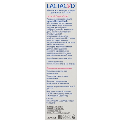 Lactacyd Гель для интимной гигиены Oxygen Fresh, 200 мл