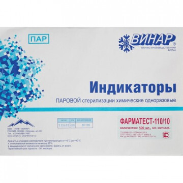 Индикатор стерилизации лек.ср-в ПАР Фарматест-110/10/0,05 500 шт., б/ж
