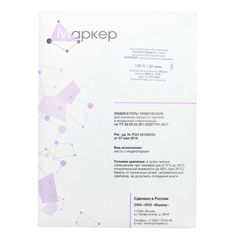 Индикатор стерилизации ХимТест-Фарм-6 4 класс 120/30 с журналом (500 штук в упаковке)