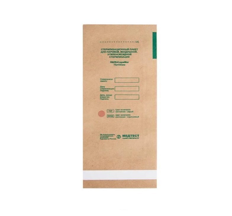 Крафт-пакеты Медтест для стерилизации инструментов 100 штук 75/150 одноразка