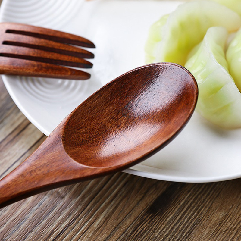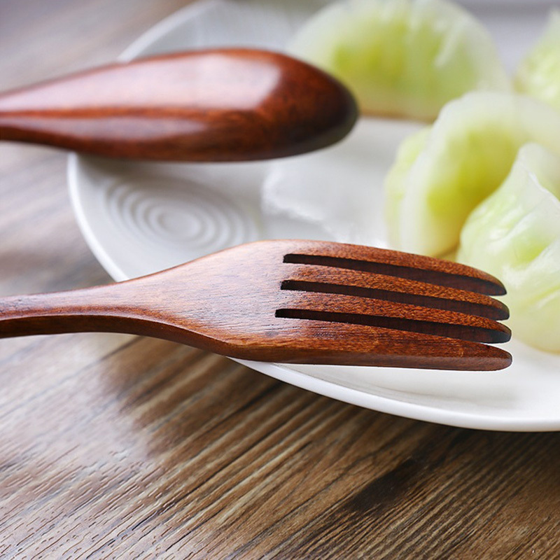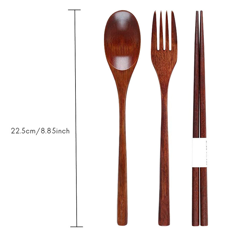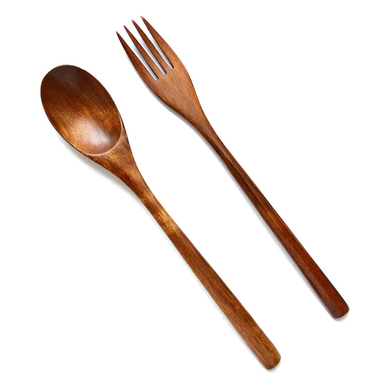 Деревянная ложка Вилка Набор из 3 столовых приборов Деревянная ложка с длинной ручкой