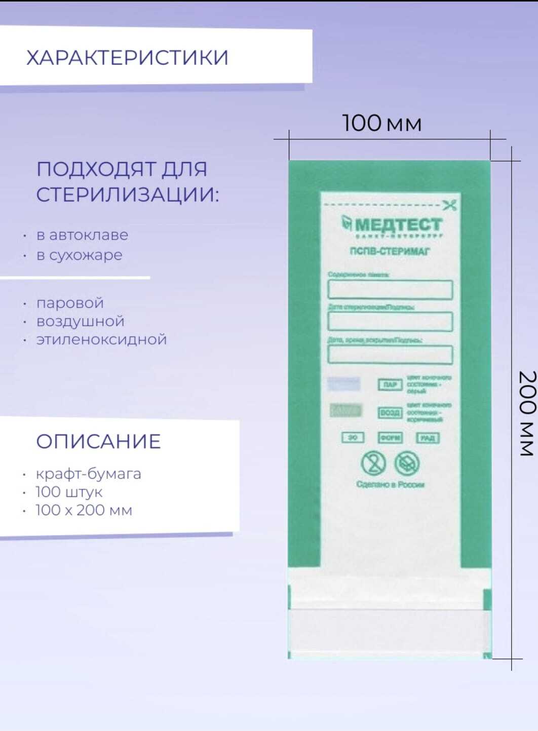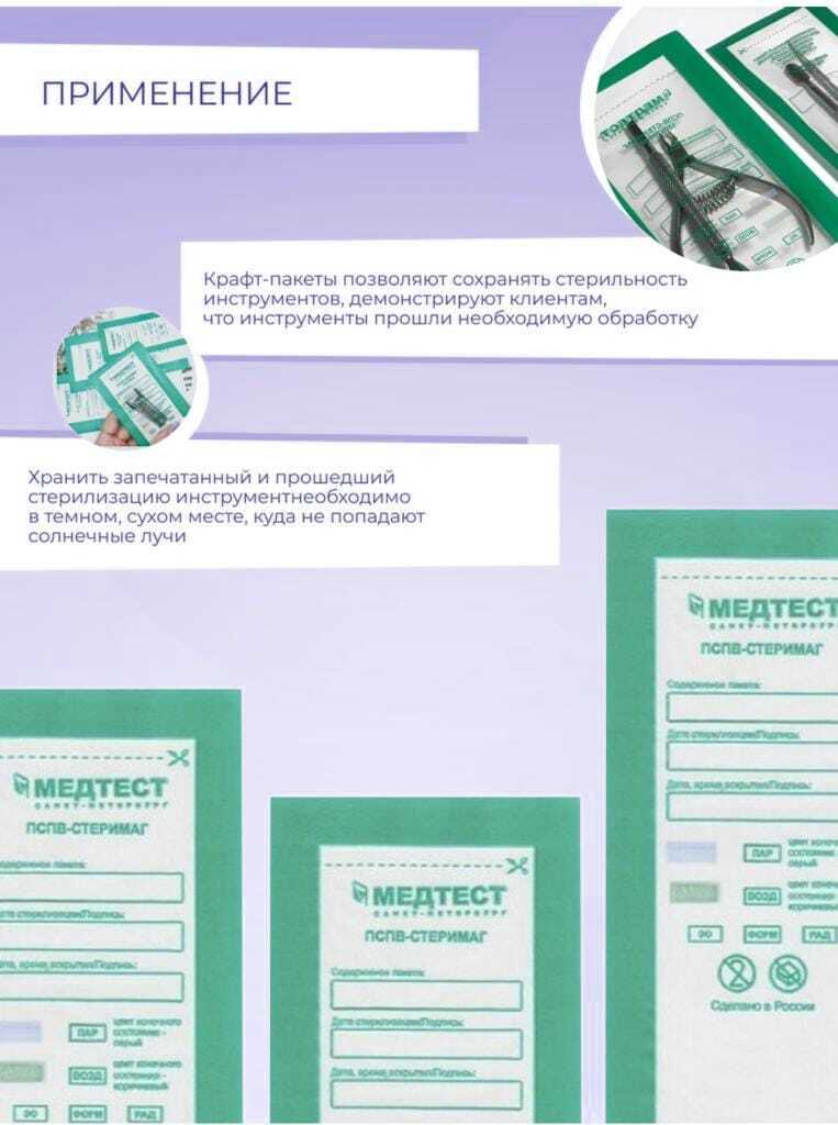 Крафт пакеты 75x150мм. из крафт-бумаги, 100шт. ПС-АЗ-1. СтериТ, Винар