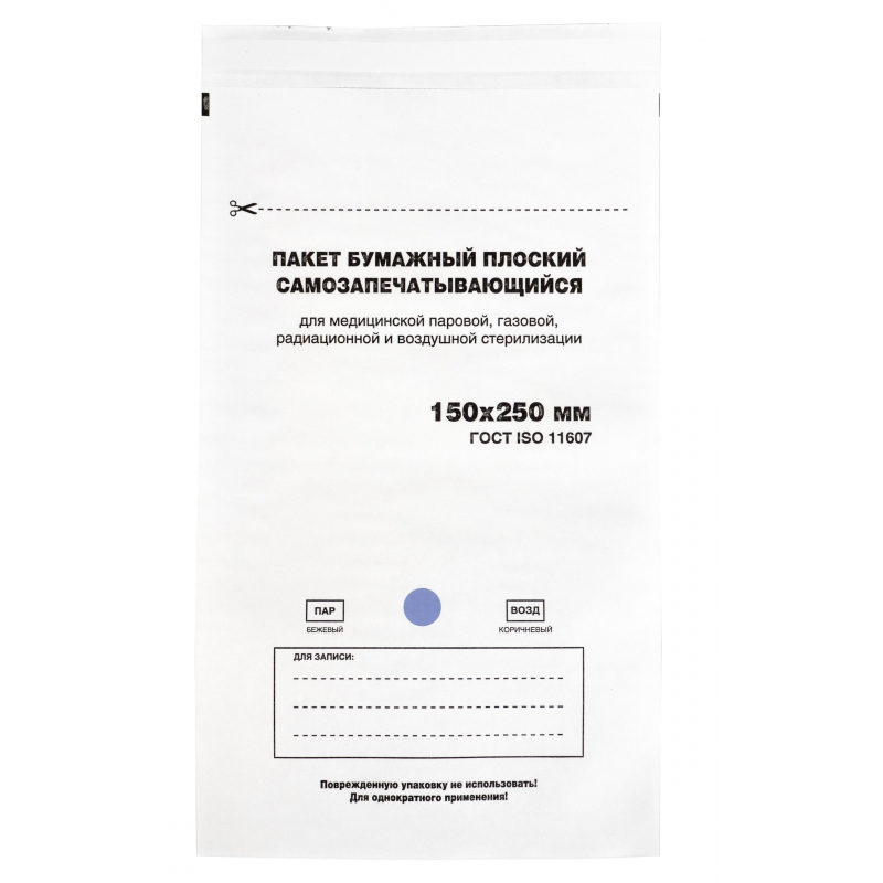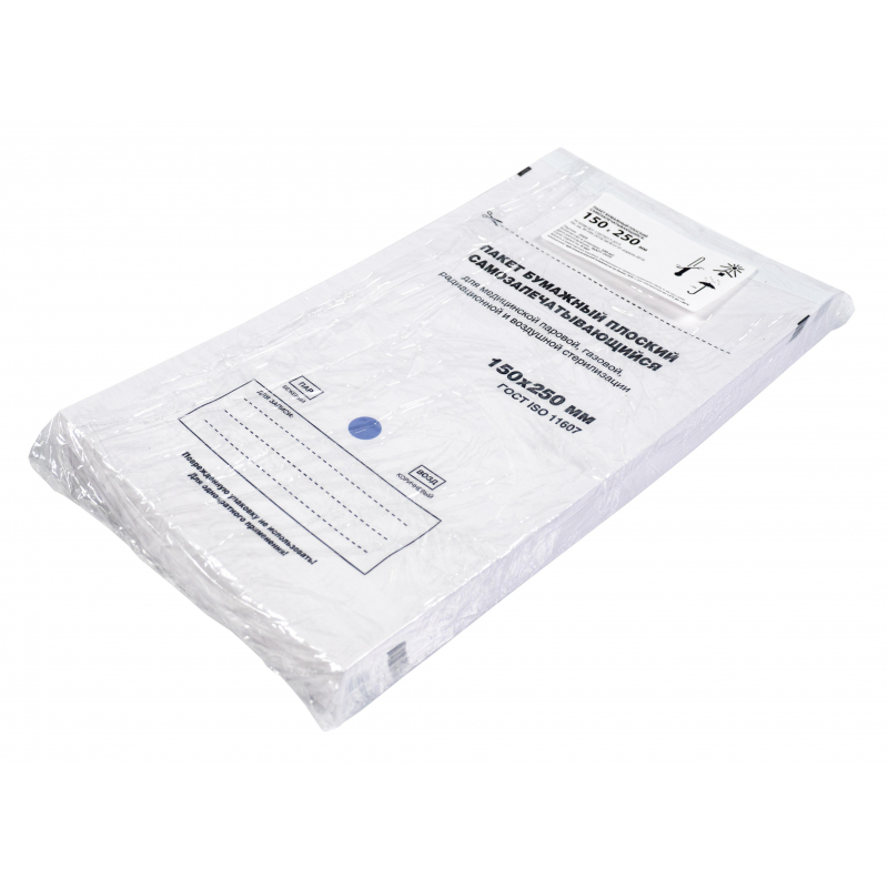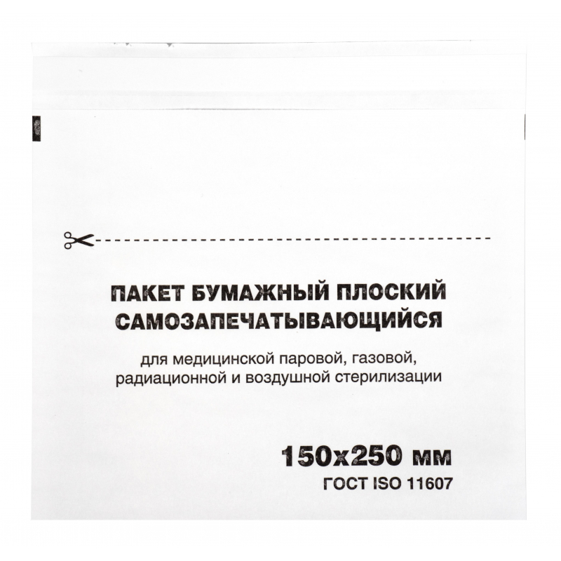 Пакет д/стерил.бум. 150 х 250 мм белый самокл. 100 шт/уп Меридиан