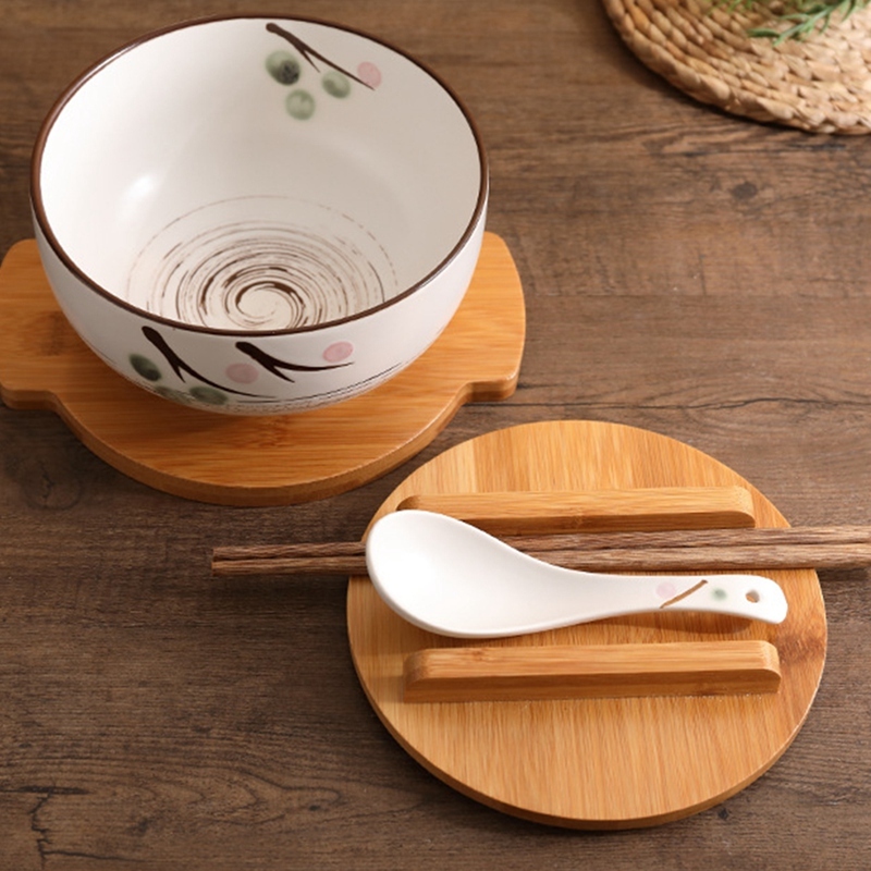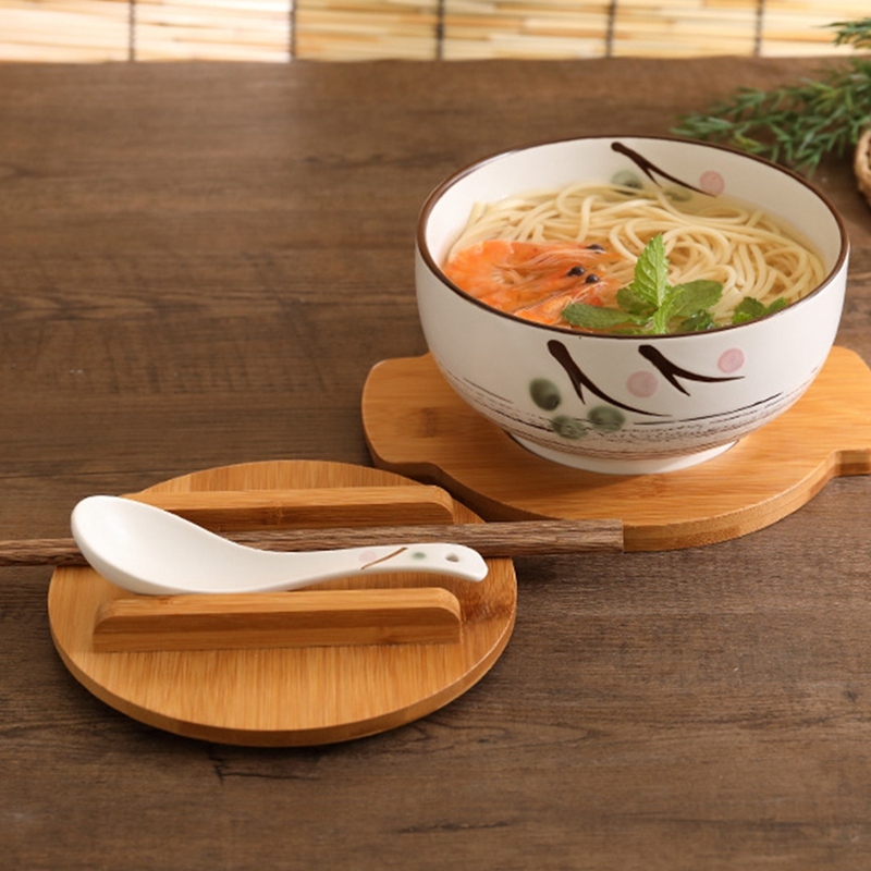 Керамическая чаша, коврик для ложки, 1000 мл, с крышкой, набор столовых приборов для суповой чаши