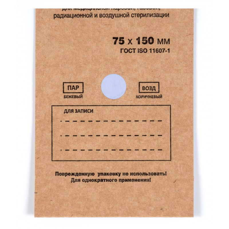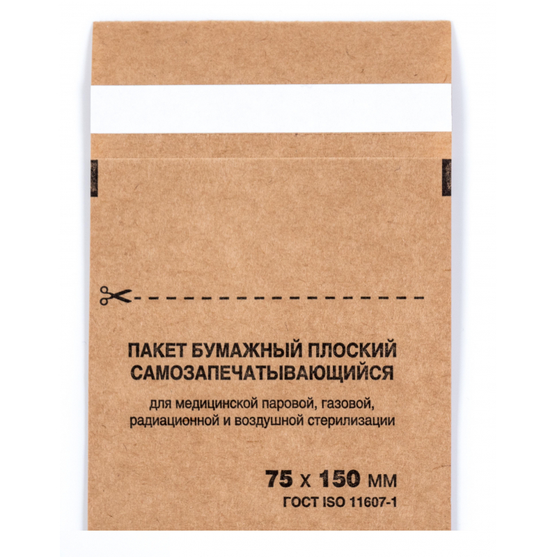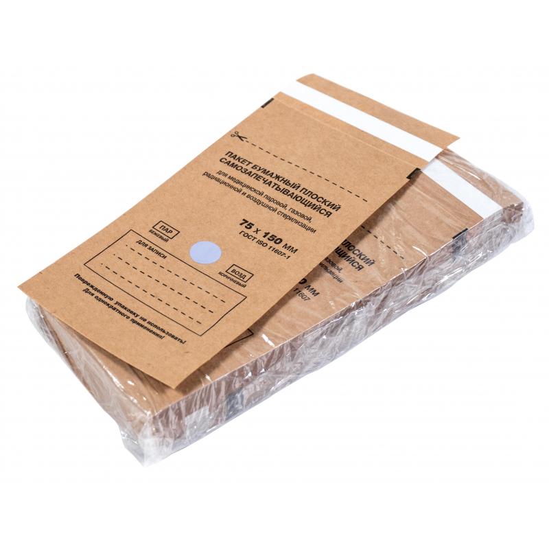 Пакет д/стерил.бум. 75 х 150 мм крафт самокл. 100 шт/уп Меридиан