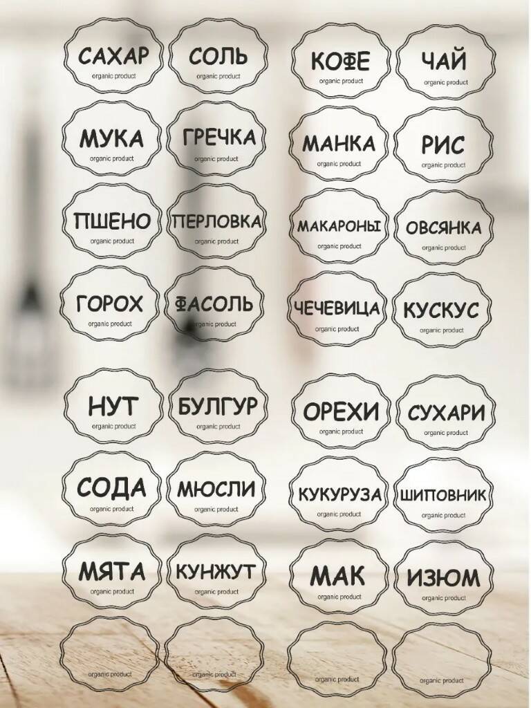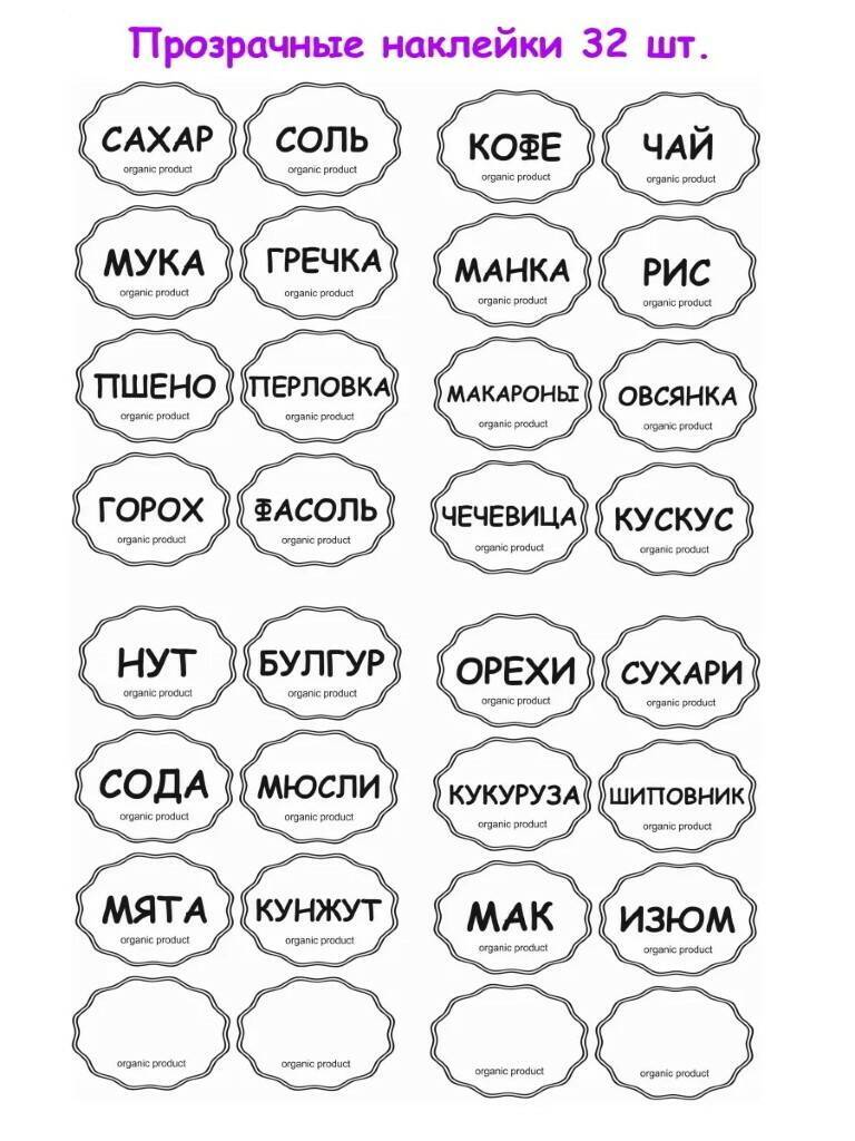Прозрачные наклейки на банки, контейнеры, коробочки, пакеты с крупами, приправами и специями 32 шт