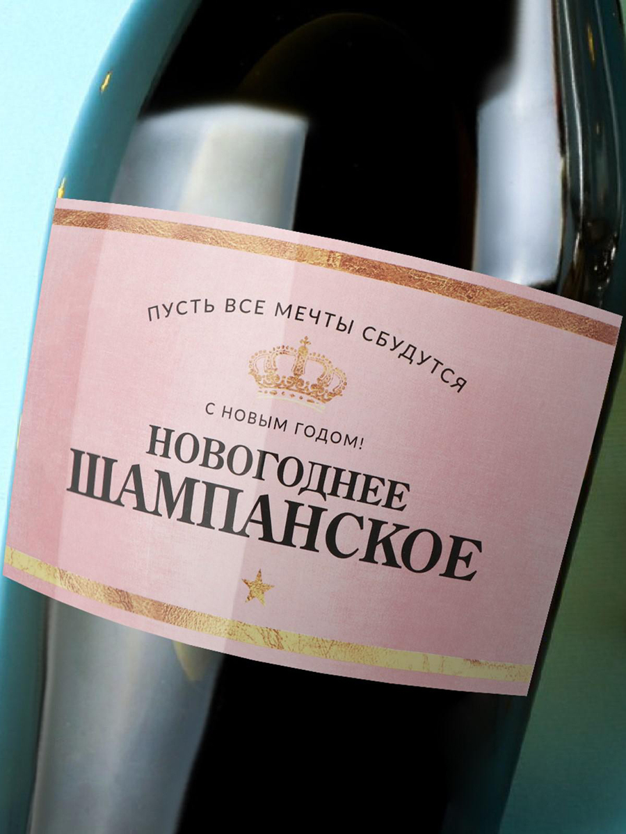 Наклейка на бутылку "Шампанское Новогоднее" розовая, 10 шт., 12 х 8 см