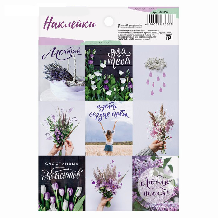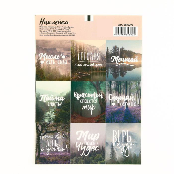Наклейка со светящимся слоем "Природные композиции", 10,5 х 14,8 см