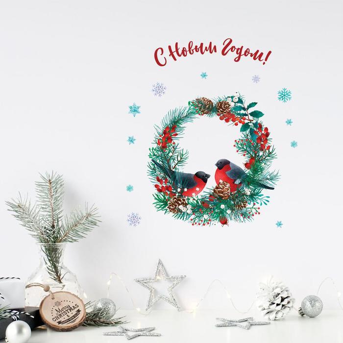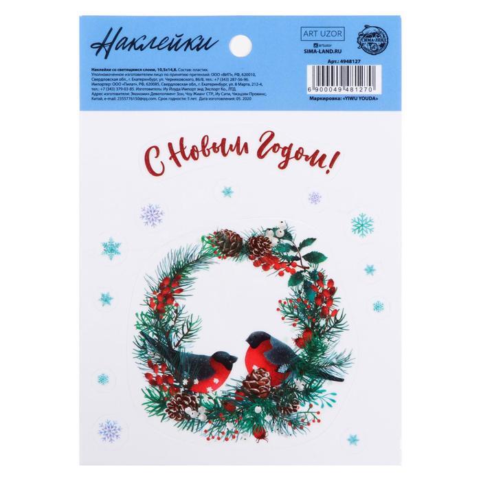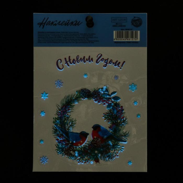 Наклейка декоративная/Наклейка со светящимся слоем Снегири, 10,5 х 14,8 см 1 уп.