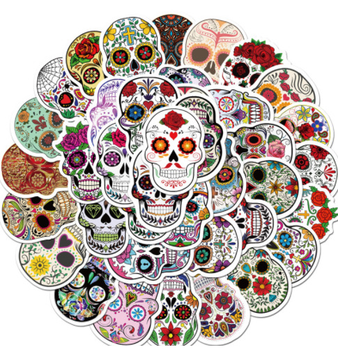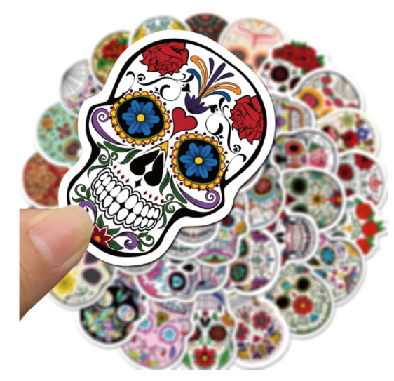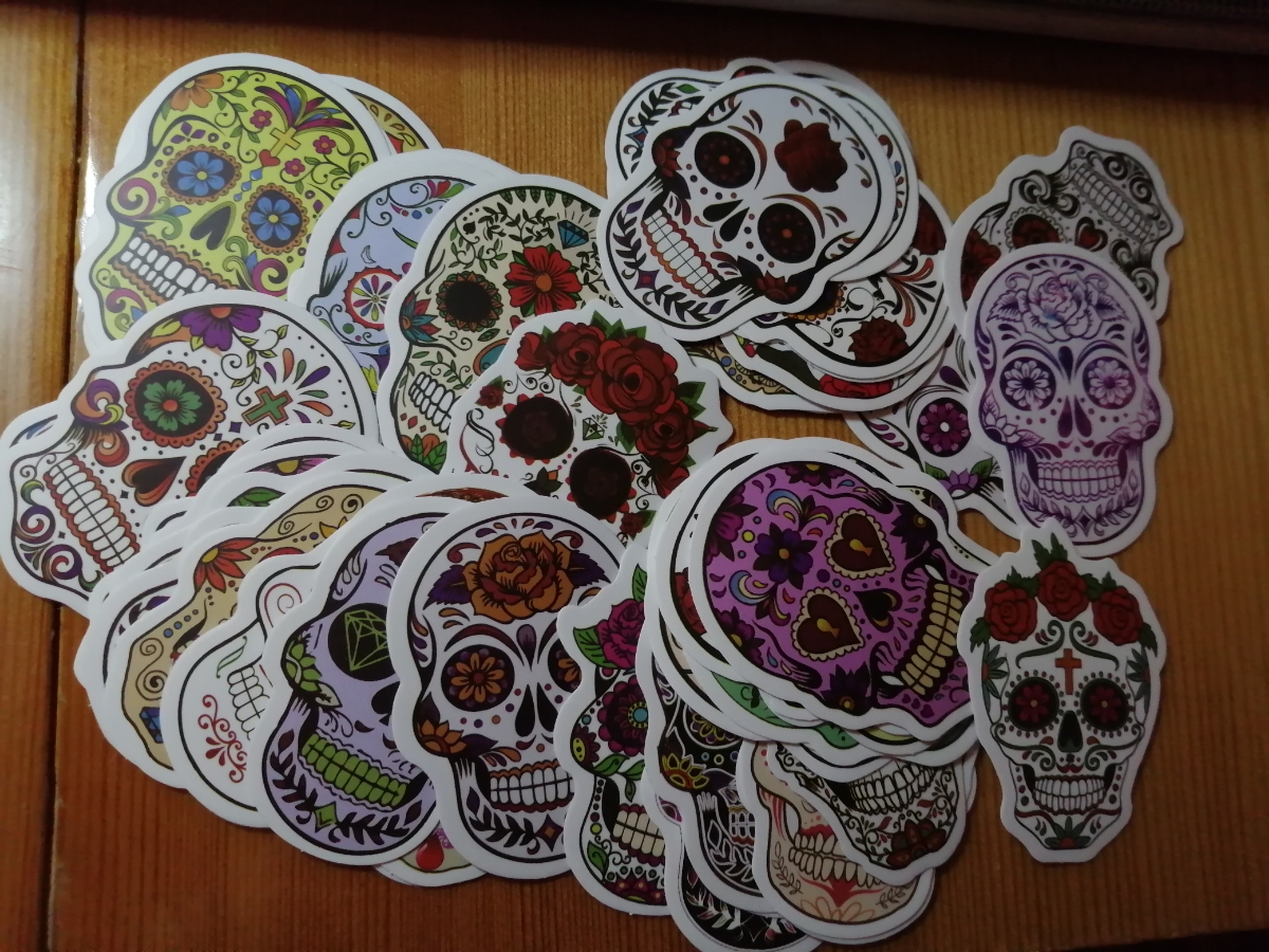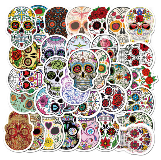 Виниловые наклейки стикеры Череп с узорами на ноутбук,телефон,компьютер,гитару.