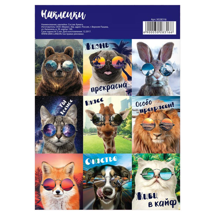 Наклейки "Новогодние" животные- 2 шт., сугробы, 9,8x15,9 см