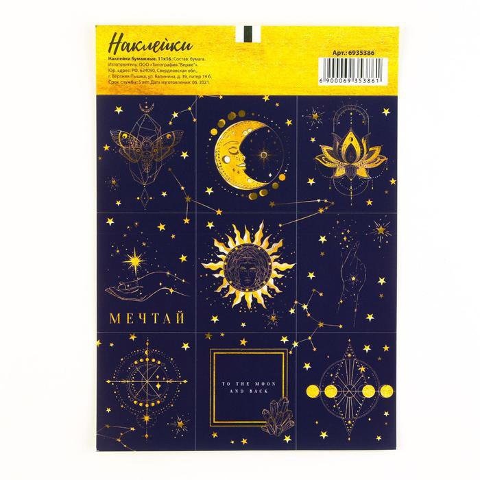 Наклейки - Этикетки- Стикеры "Космос" НАБОР 3 ЛИСТА