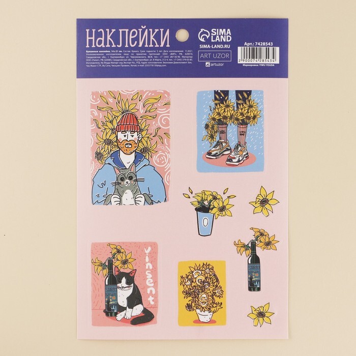Наклейка декоративная/Наклейка бумага Цветочная шершавая набор 4 шт 14,5х9,5 см 1 уп.