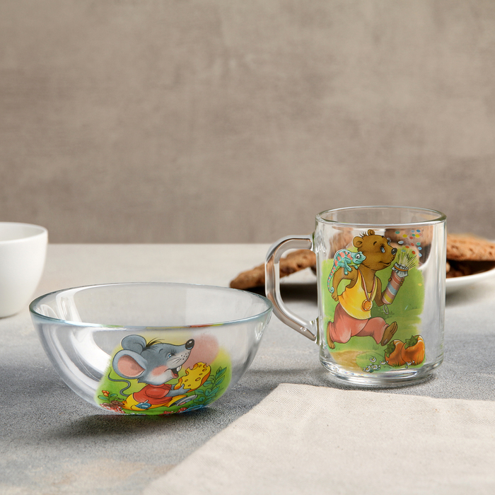 Набор Азбука, 2 предмета: кружка 200 мл, миска 13 cм, рисунок МИКС