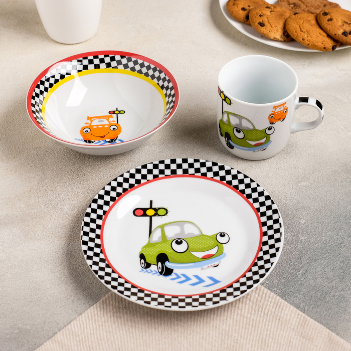 Набор детской посуды Светофор, 3 предмета: кружка 230 мл, миска 400 мл, тарелка 18 см
