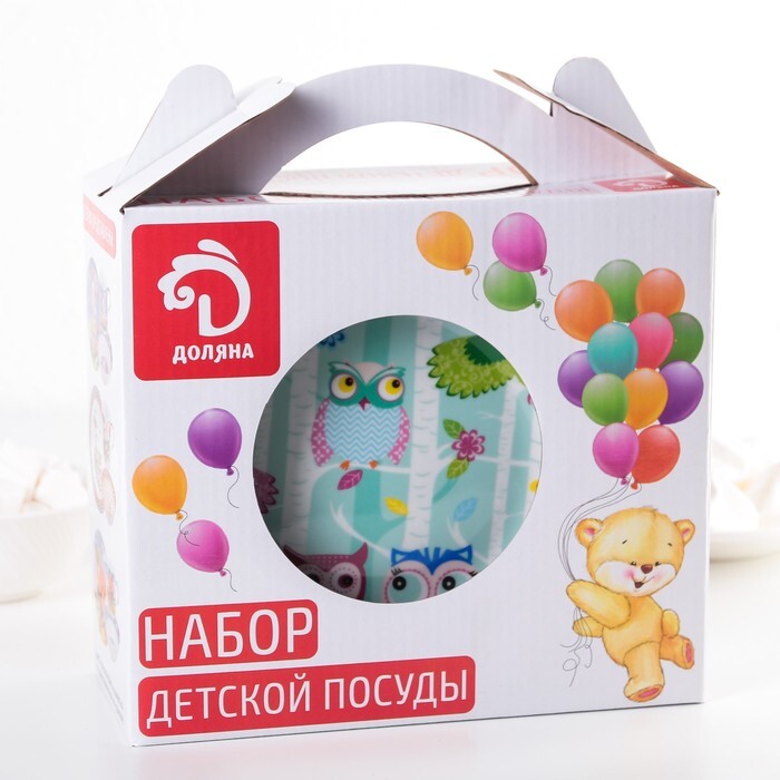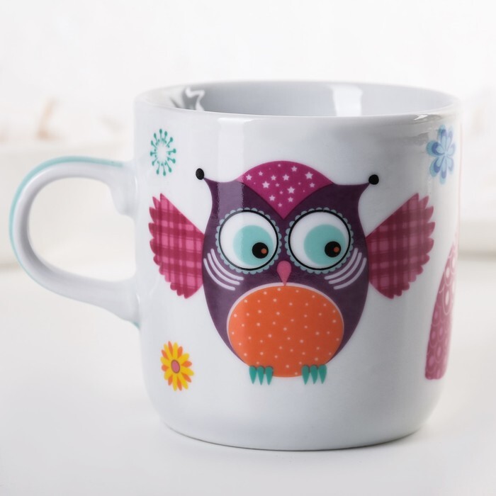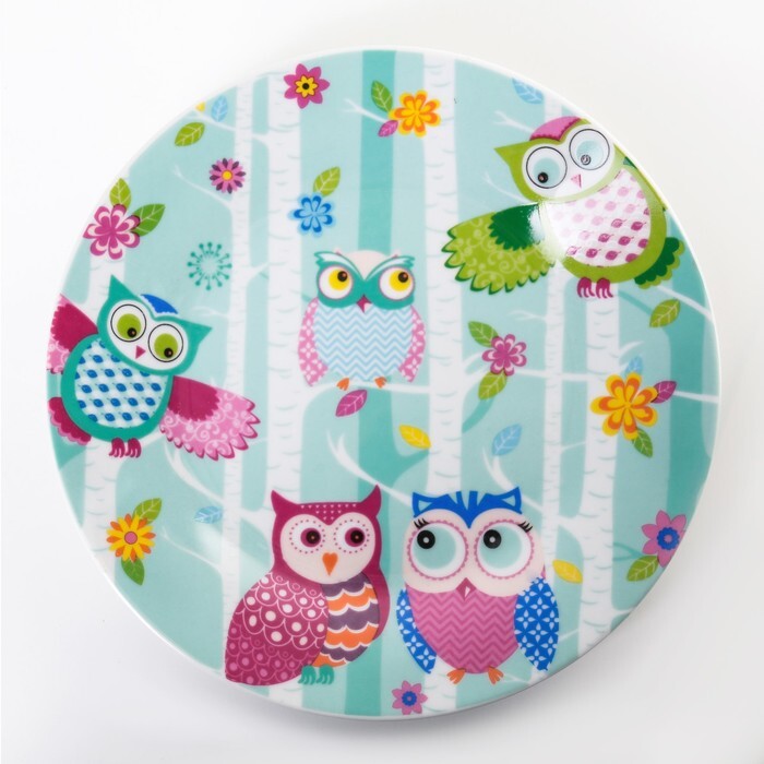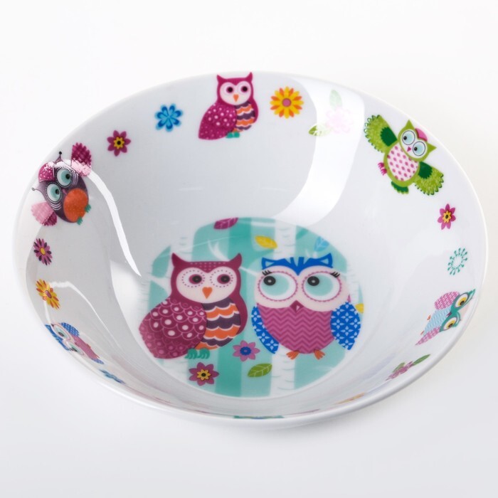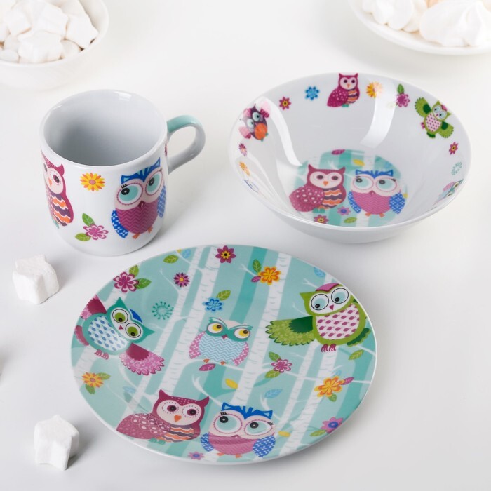 Набор детской посуды Домашняя "Совушки", 3 предмета: кружка 230 мл, миска 400 мл, тарелка 18 см