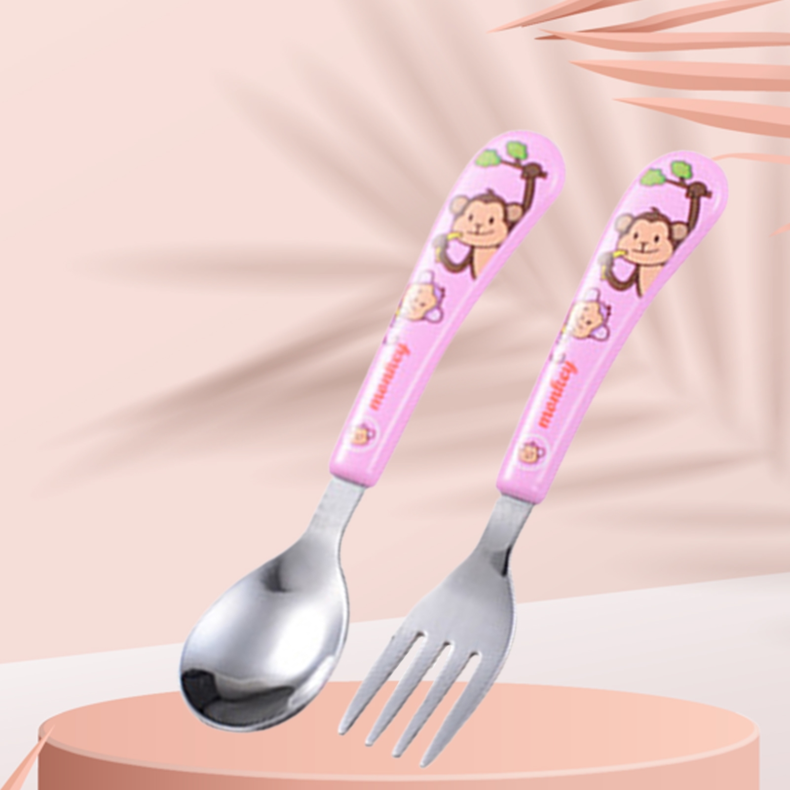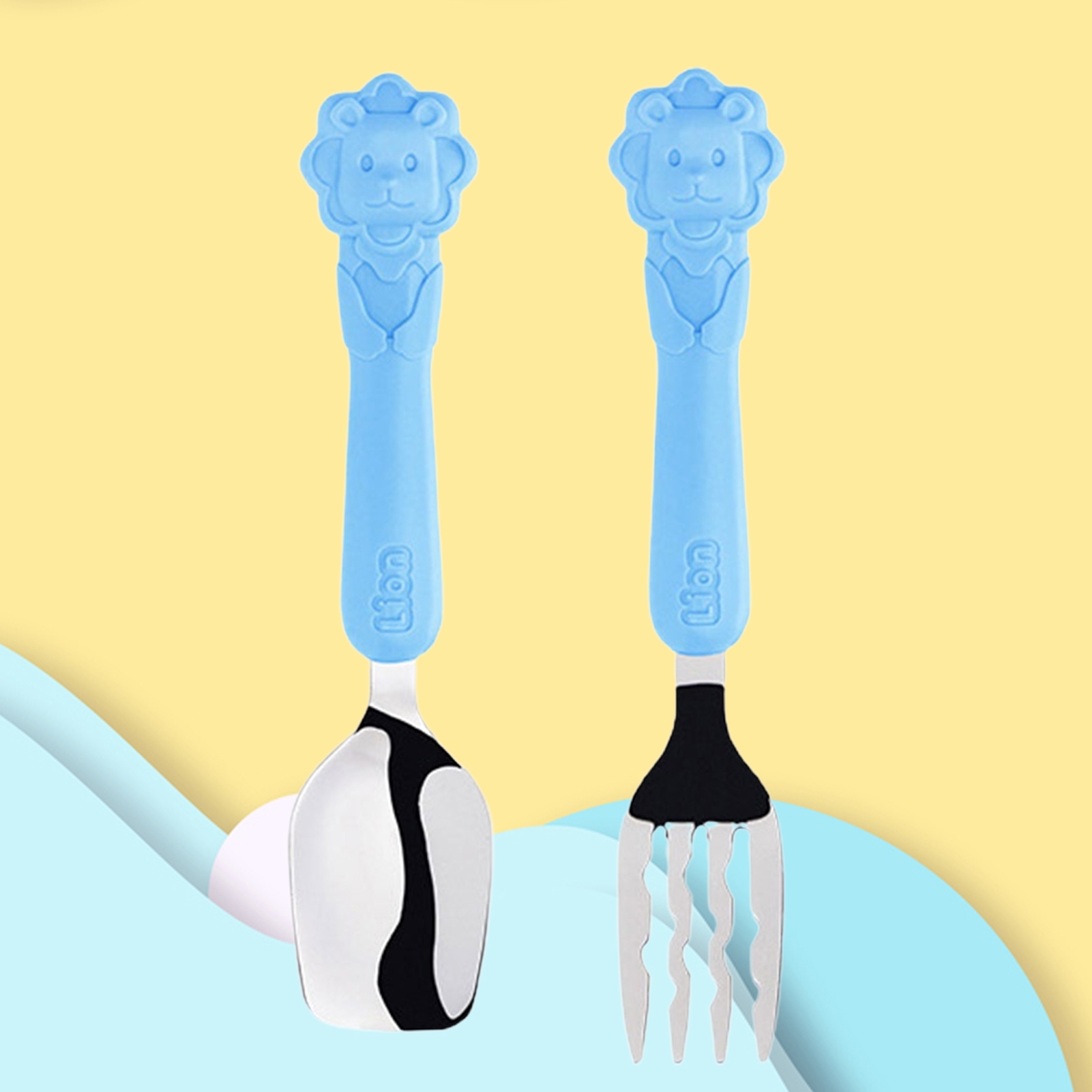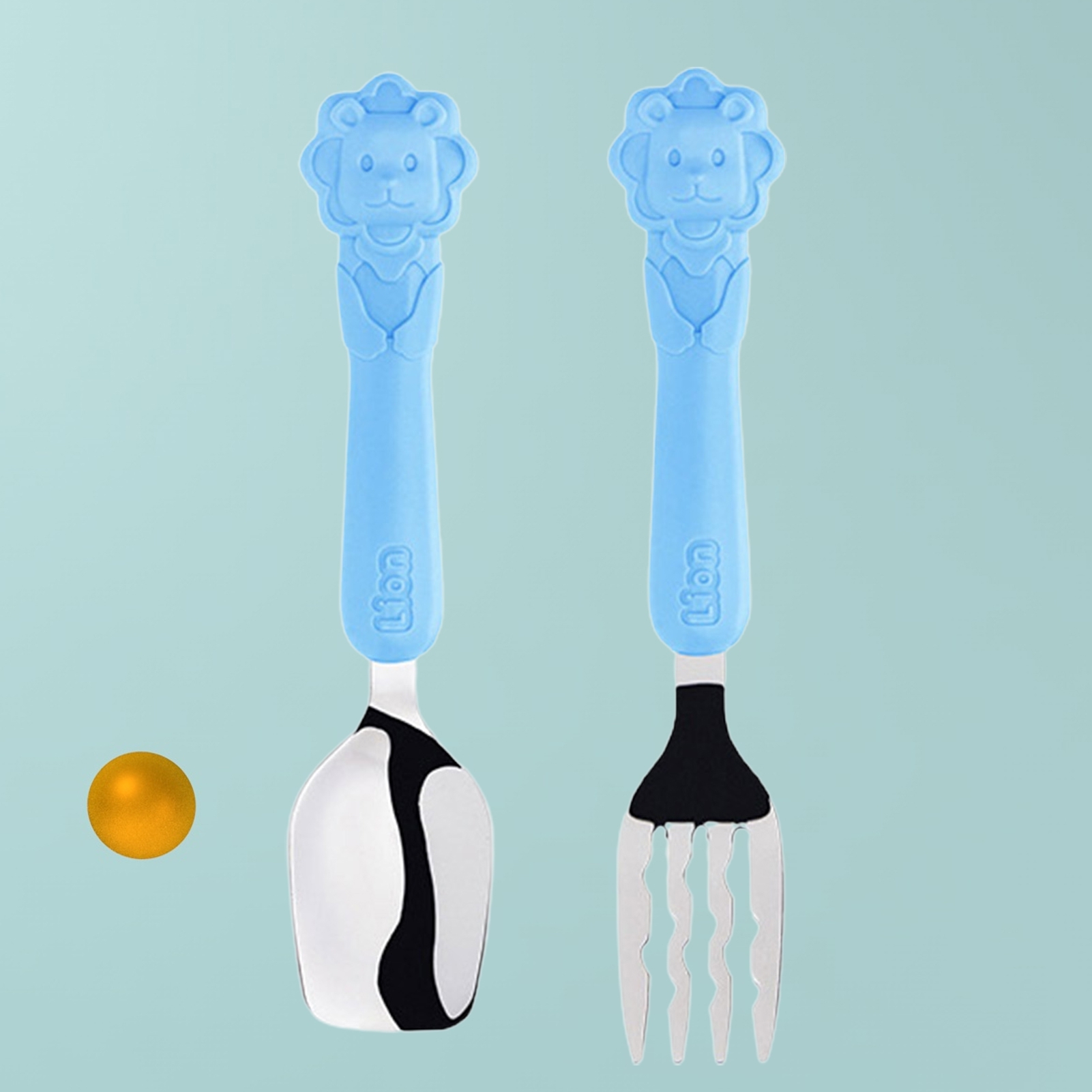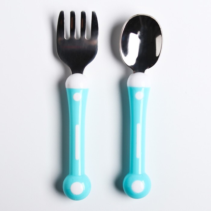Набор детский столовых приборов, вилка и ложка, цвет голубой