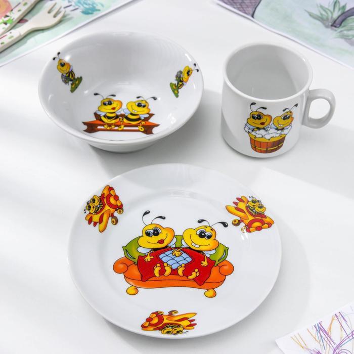 Набор посуды Пчёлы, 3 предмета: кружка 250 мл, салатник 350 мл, тарелка мелкая 16,5 см, рисунок МИКС