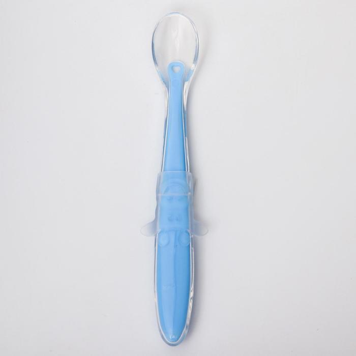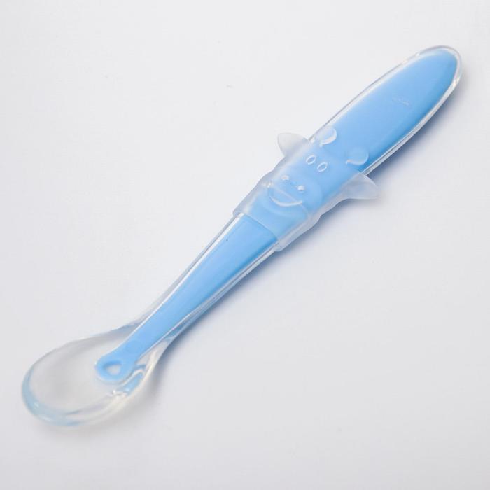 Ложка силиконовая детская "Жирафик", цвет голубой