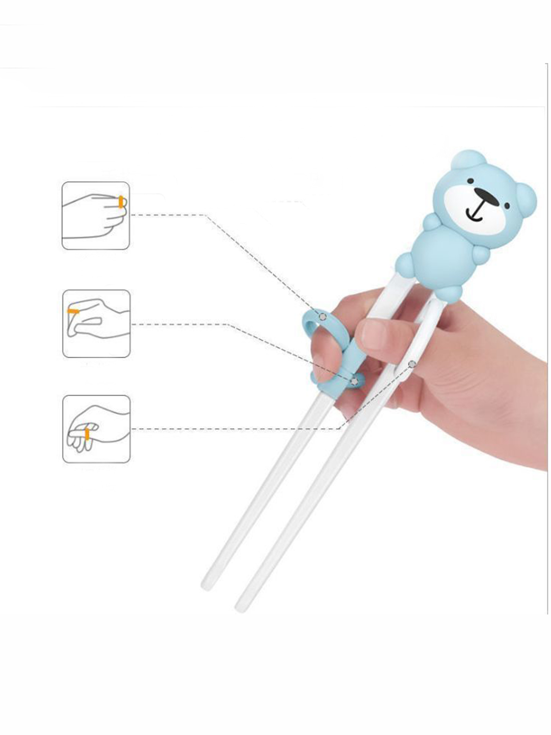 Обучающие палочки для еды_голубой мишка с кольцами, 1 шт.