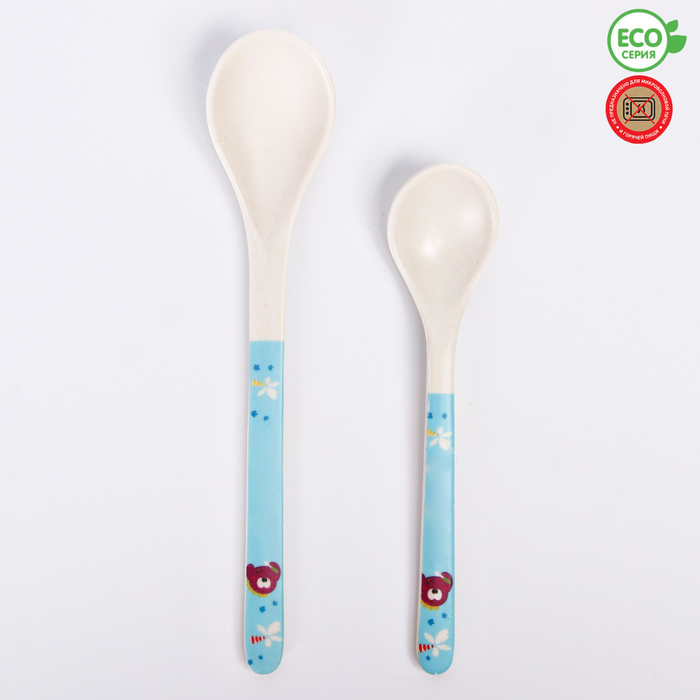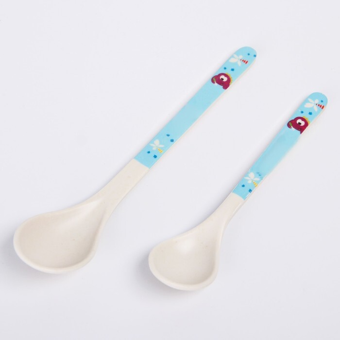 Набор приборов для кормления из бамбука, ложка 2 шт., цвет желтый/голубой