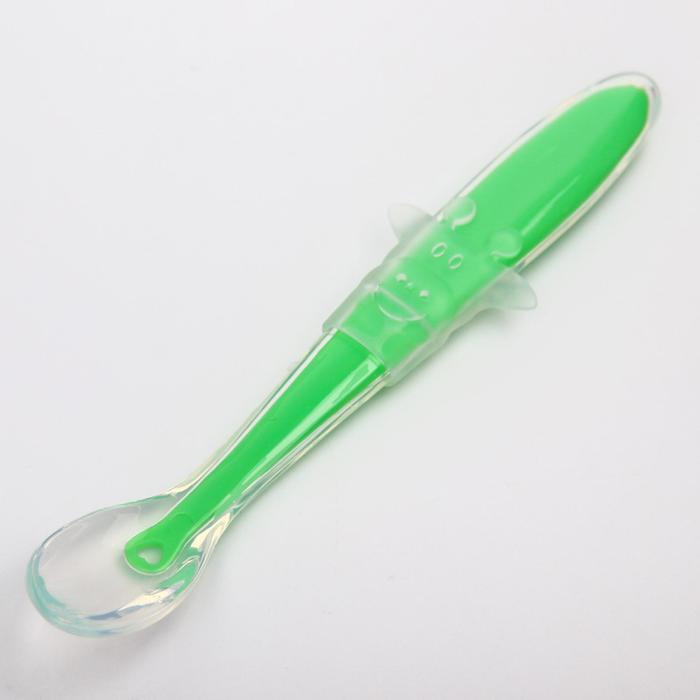 Ложка силиконовая детская "Жирафик", цвет зеленый