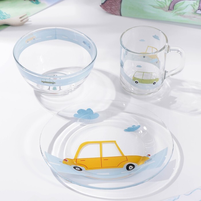 Набор детской посуды Домашняя "Бип-бип", 3 предмета: миска 450 мл, тарелка d 20 см, кружка 200 мл
