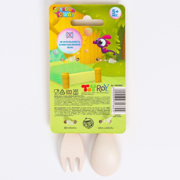 Набор вилка и ложка из бамбука Дракоша Тоша