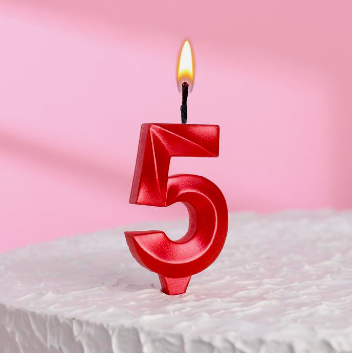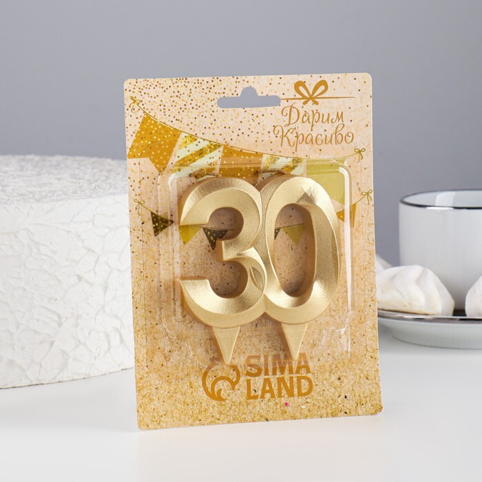 Свеча в торт юбилейная "Грань", цифра 30, золотой металлик, 7.8 см