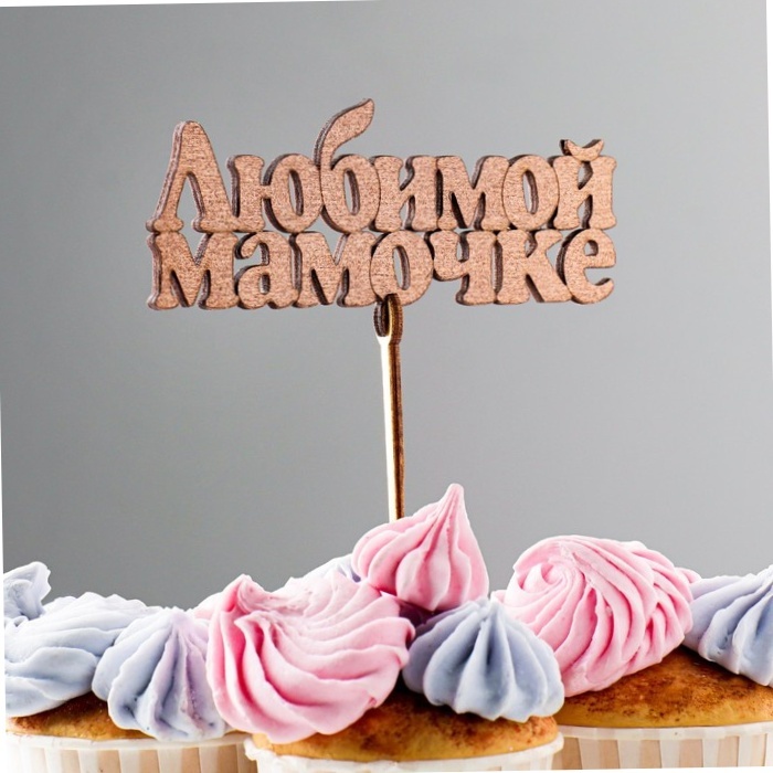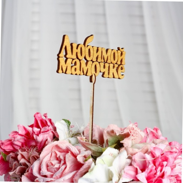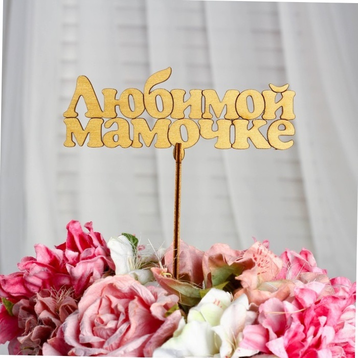 5 шт. Топпер 'Любимой мамочке', золотой, 14x5,5 см Дарим Красиво