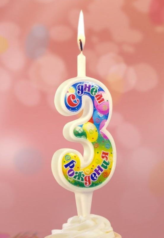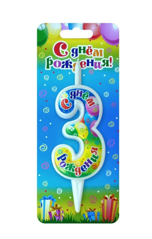 Свечи для торта цифра 3, 1 шт, 1 уп.