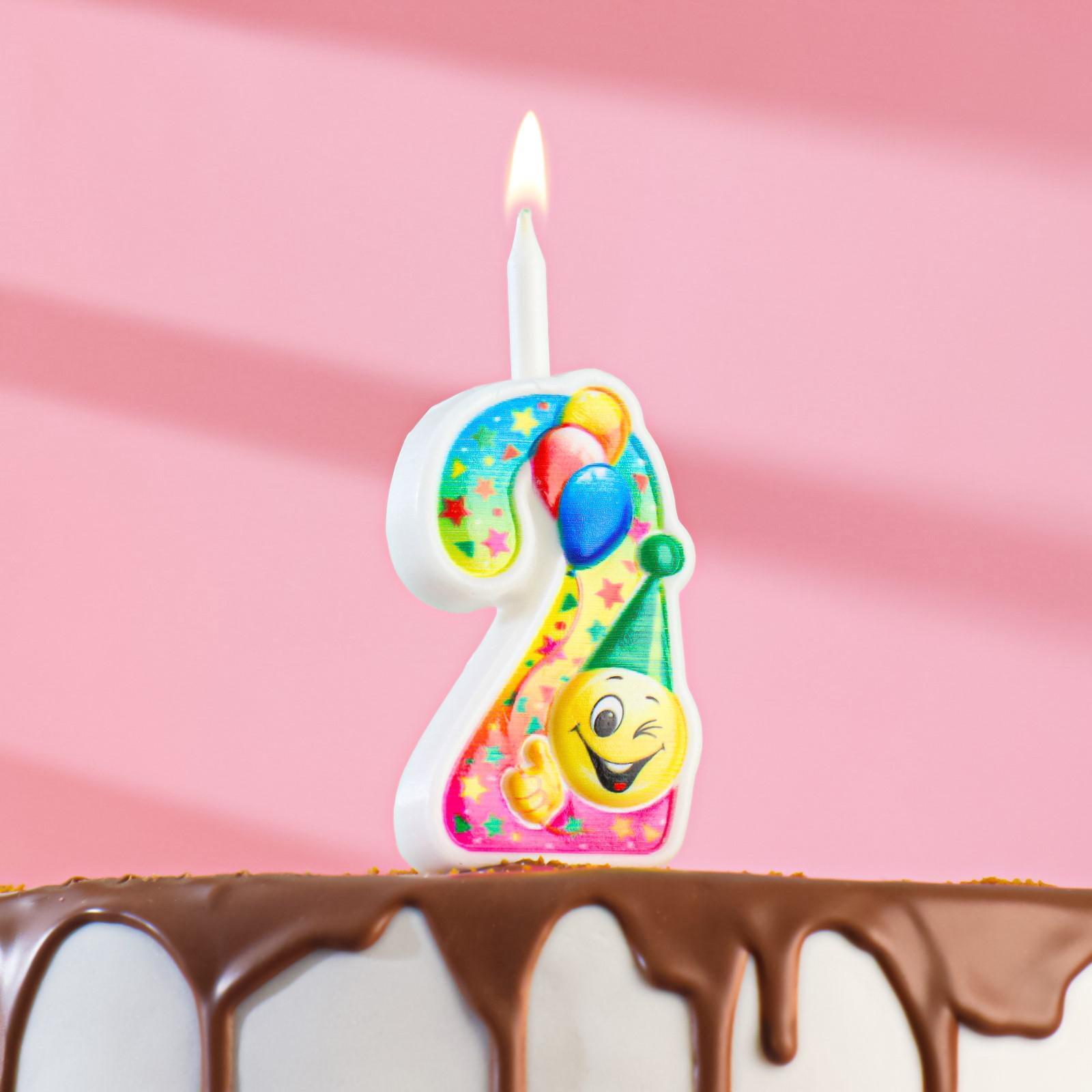 Свечи для торта цифра 2 "Смайлик с шарами ", 1 шт