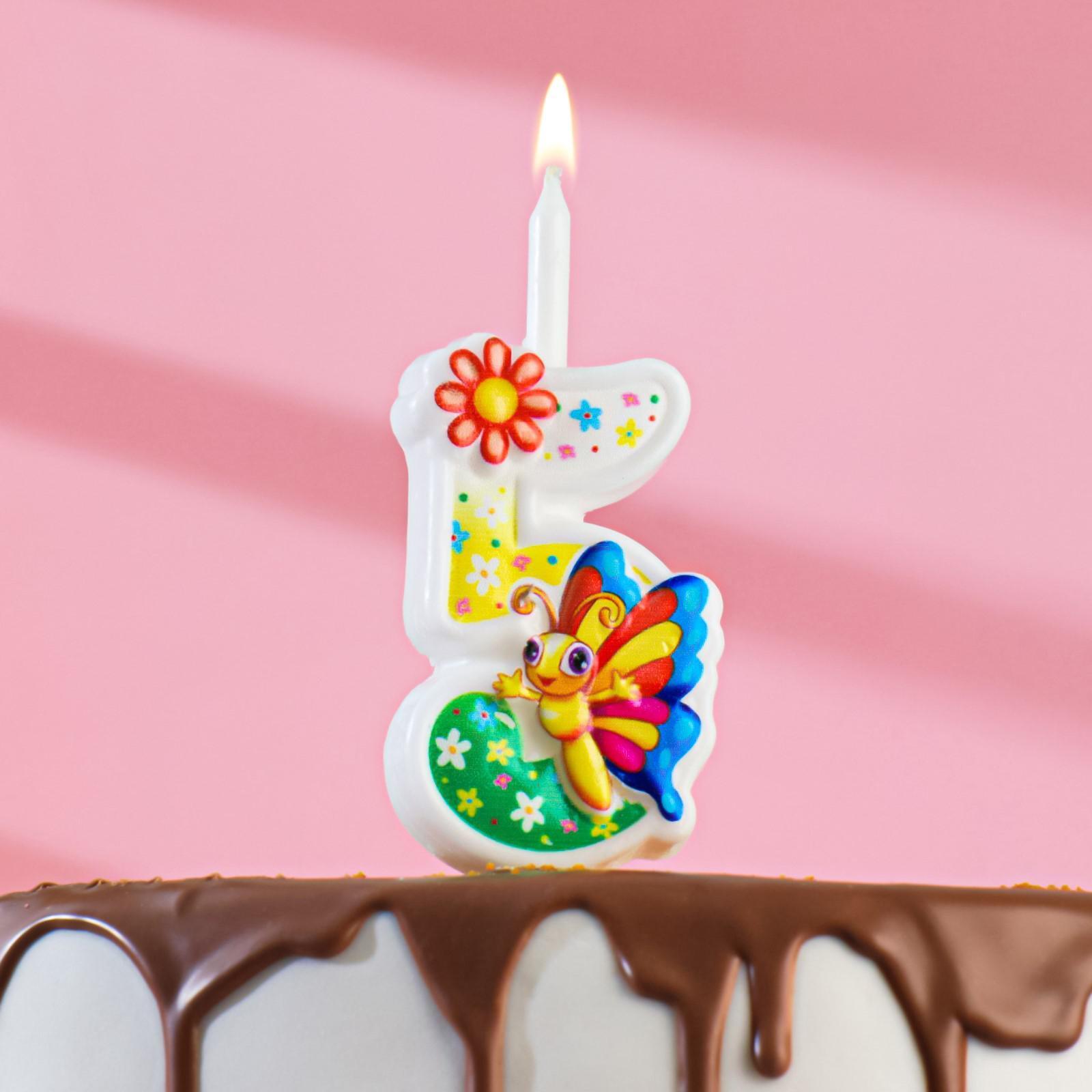 Свечи для торта цифра 5 "С Бабочкой", 1 шт