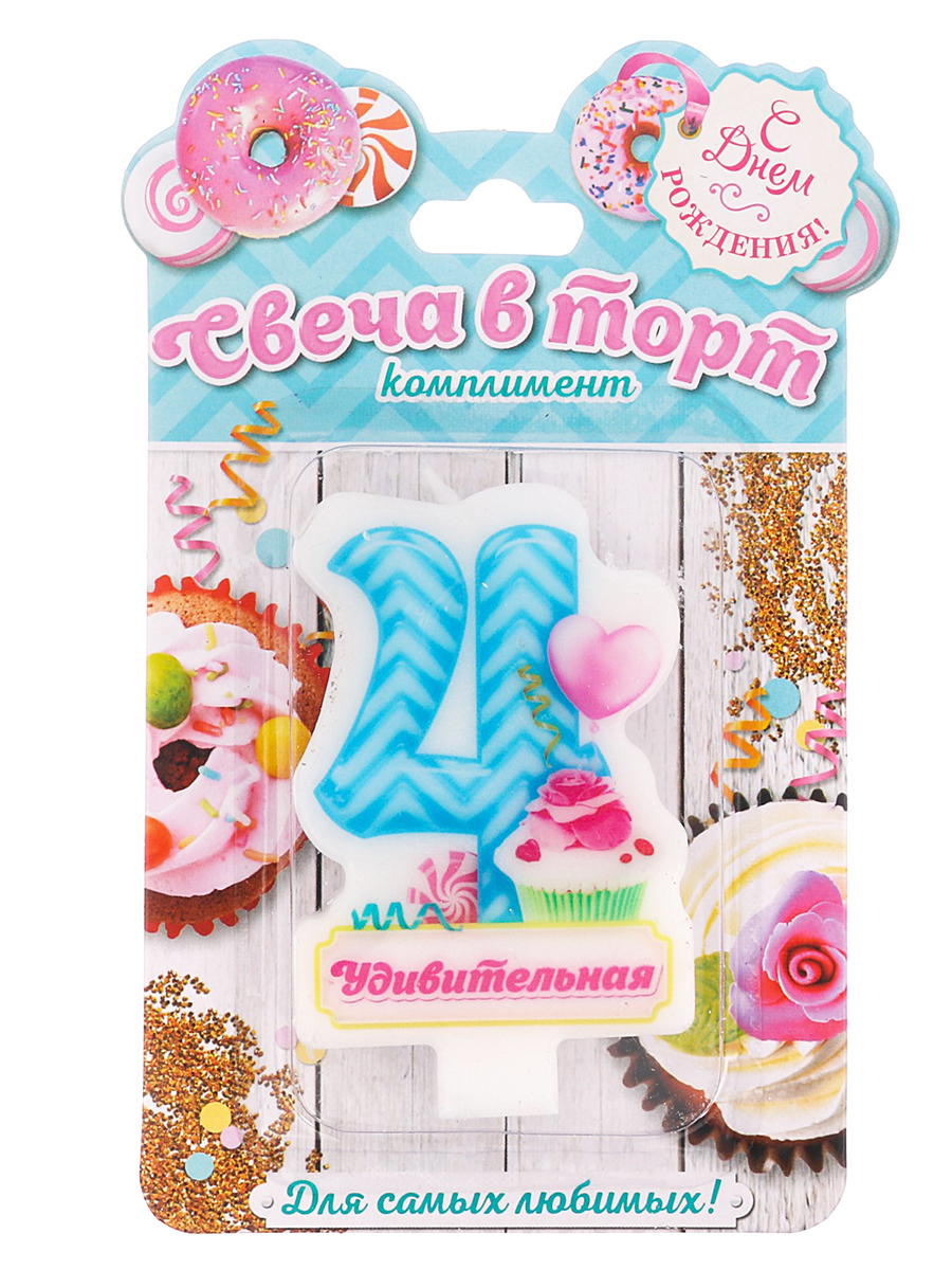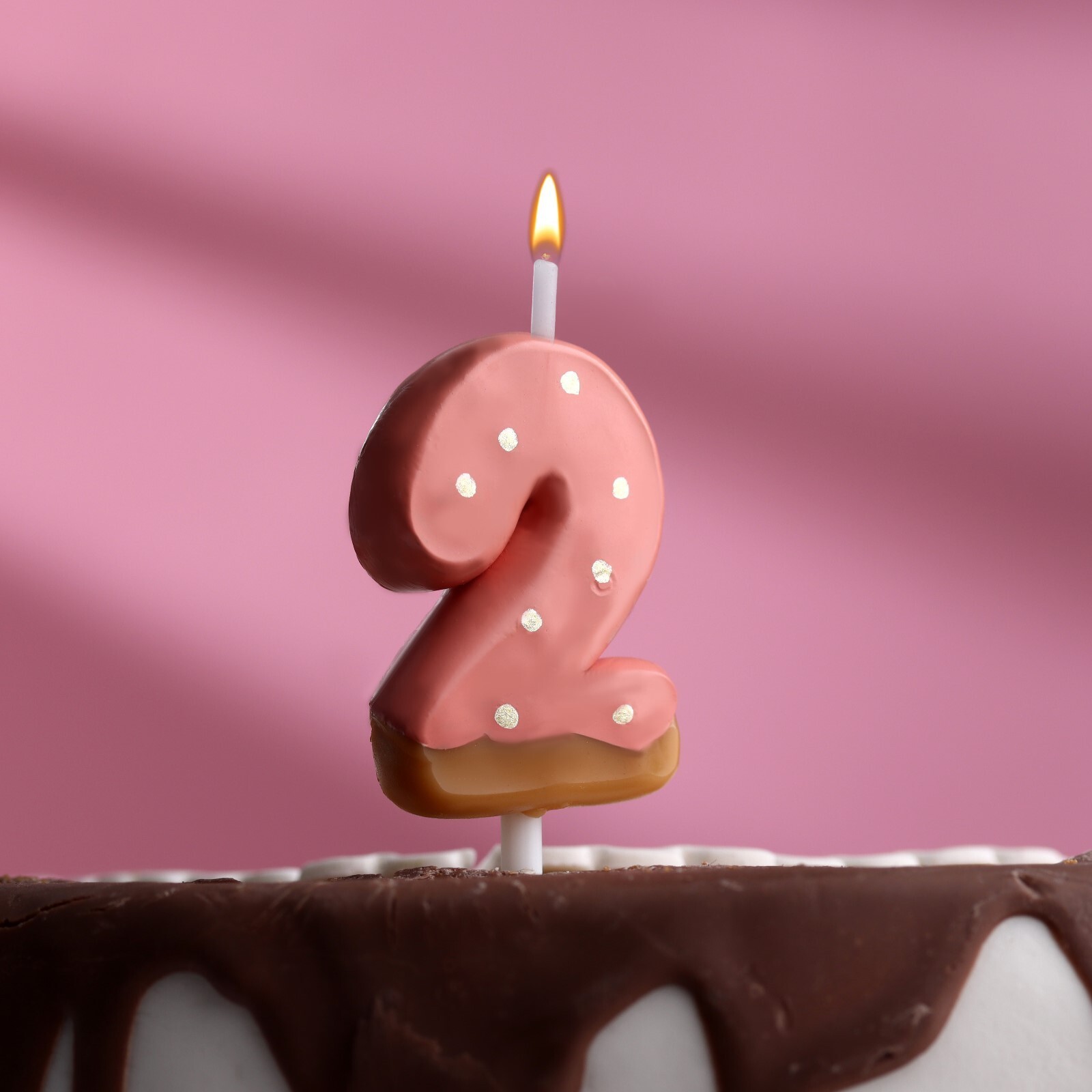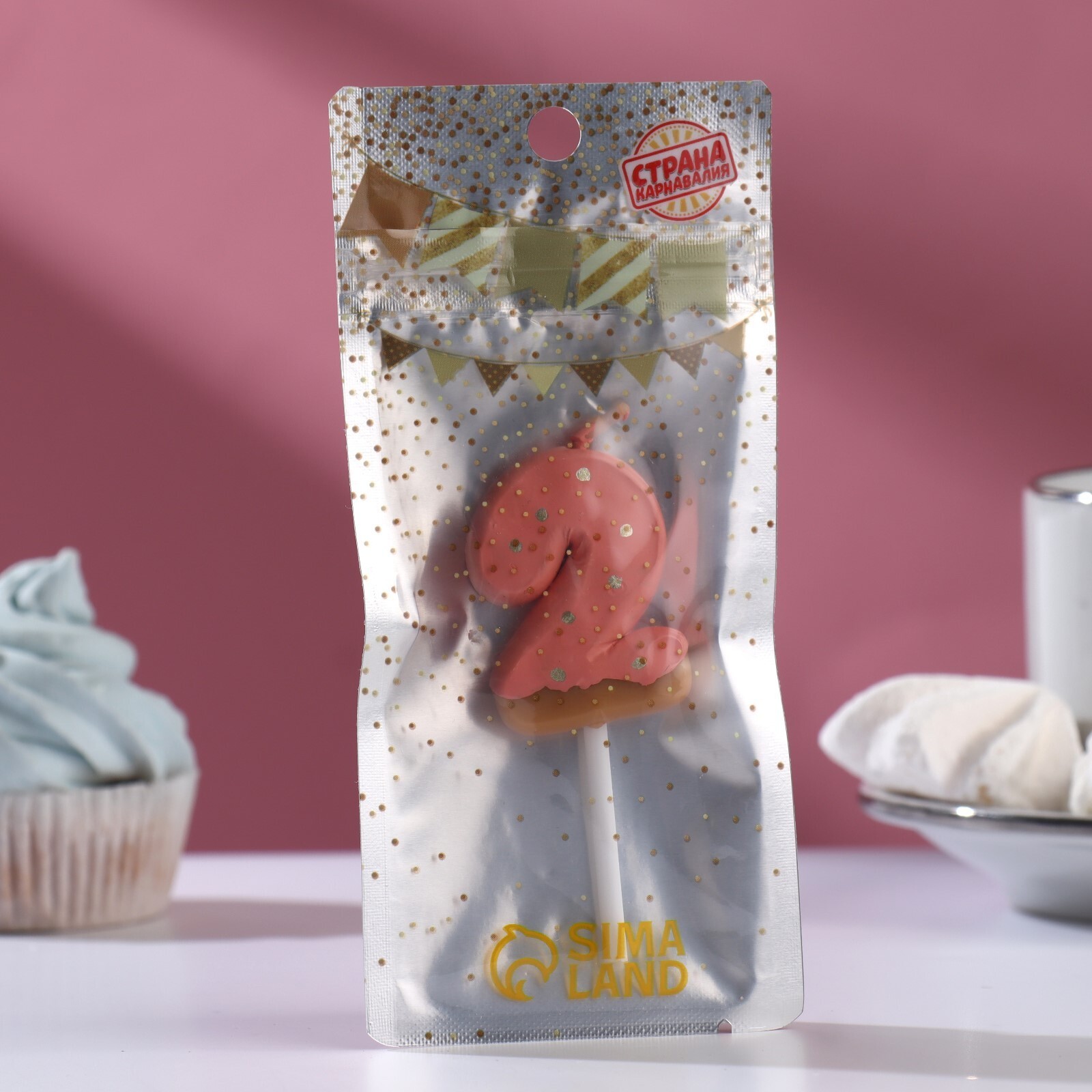 Свечи для торта цифра 2 "Клубничная глазурь", 1 шт