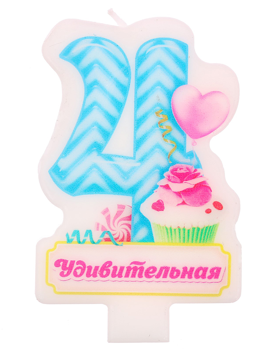 Свечи для торта цифра 4 "Цветное конфетти", 1 шт