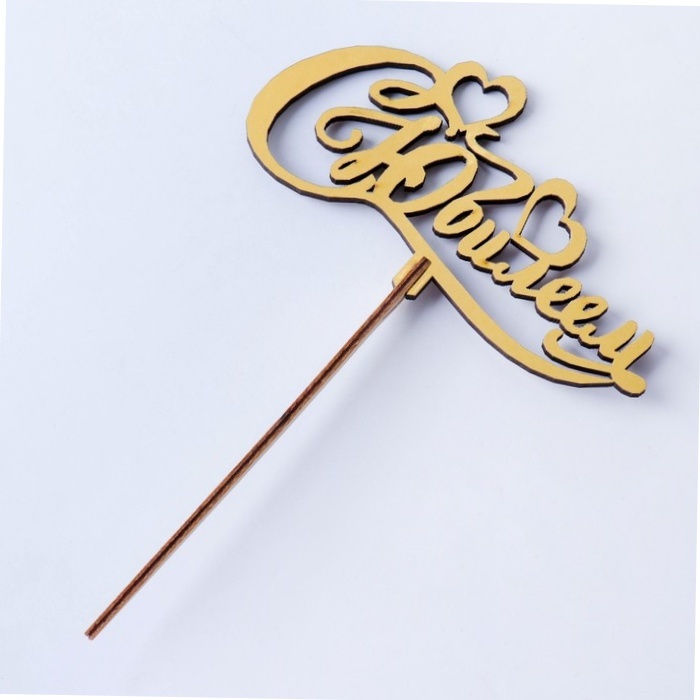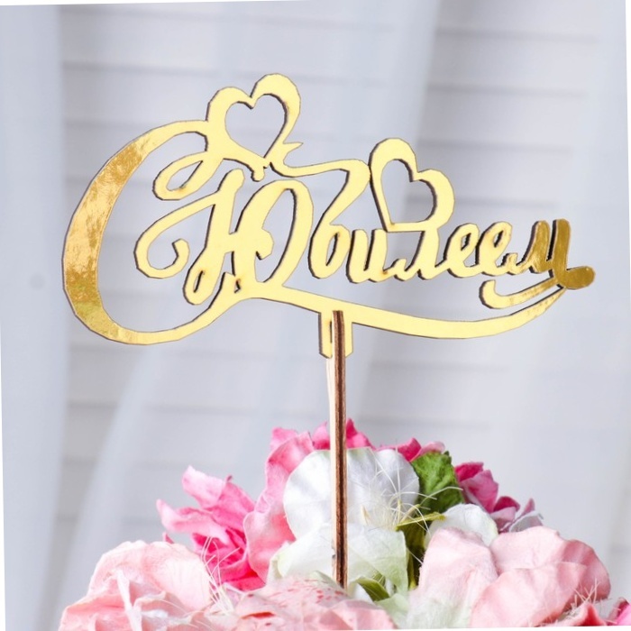 5 шт. Топпер Дарим Красиво 'С Юбилеем, расцветшая роза' на подвесе, золотой