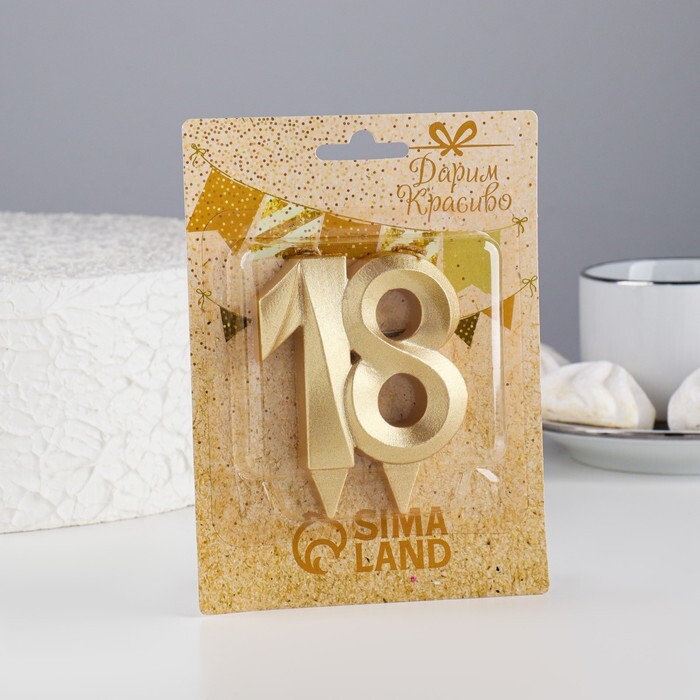 Свеча в торт юбилейная Грань, цифра 18, золотой металлик, 78 см