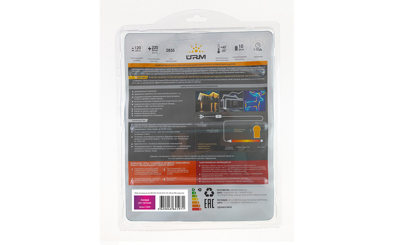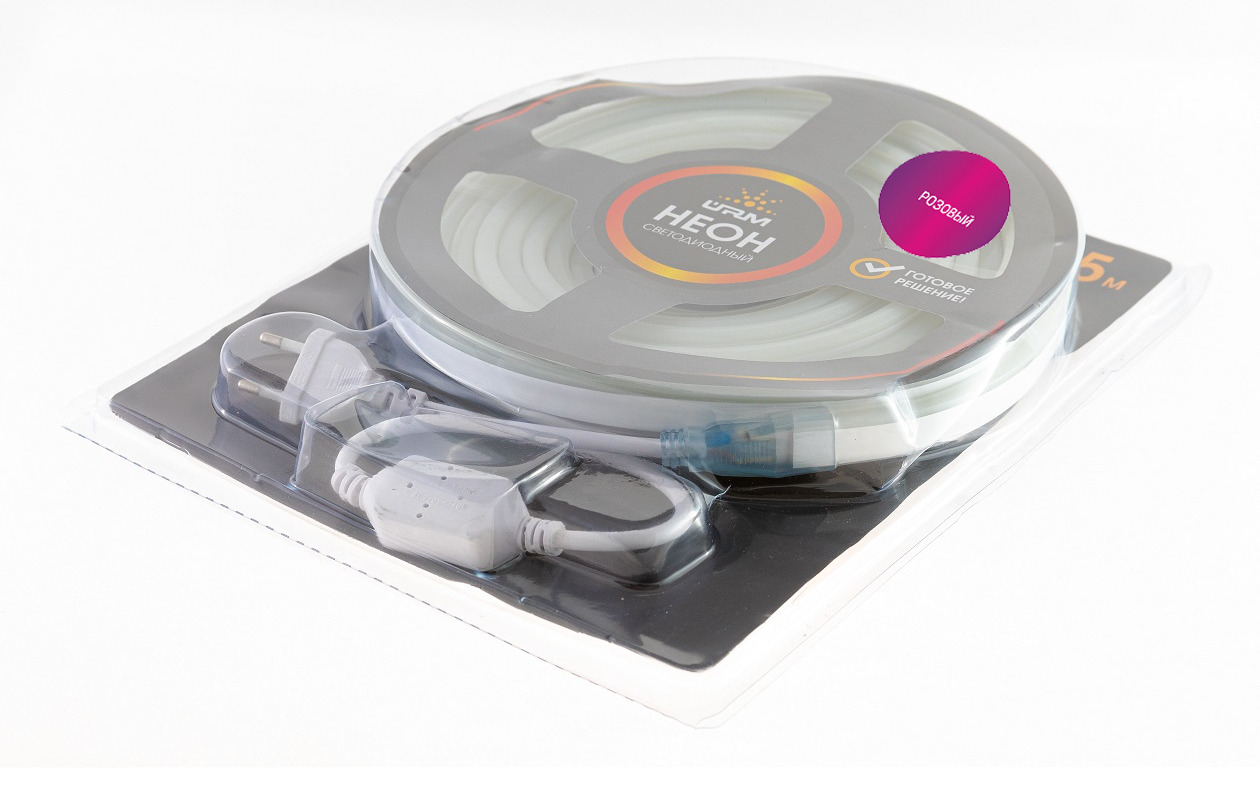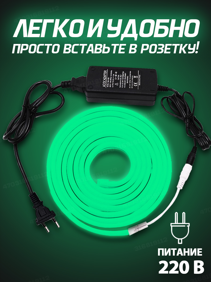 Светодиодная лента 5м, 220В, IP68, 120 LED/m гибкий неон, SMD 2835, 120 LED, 465 лм, комплект