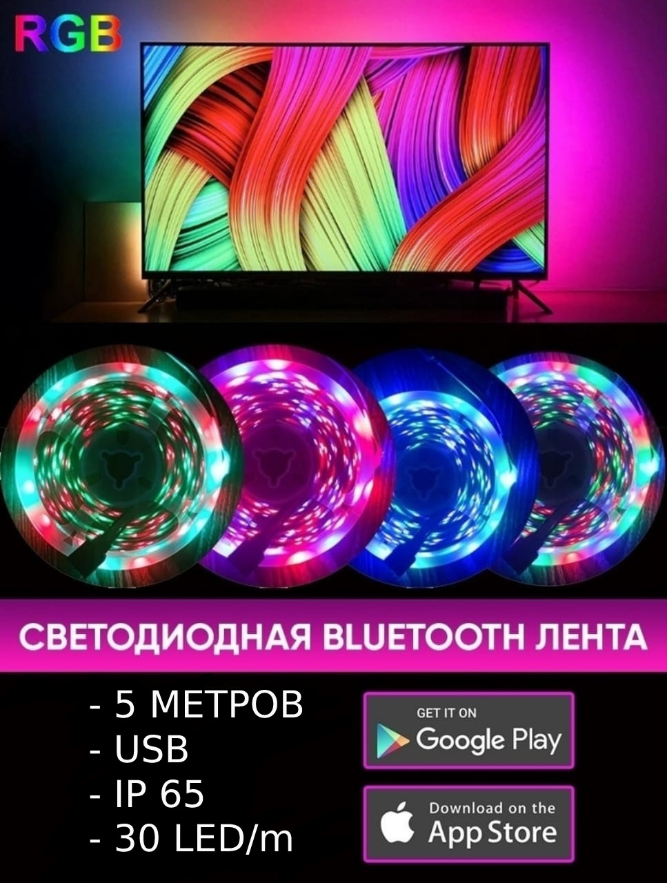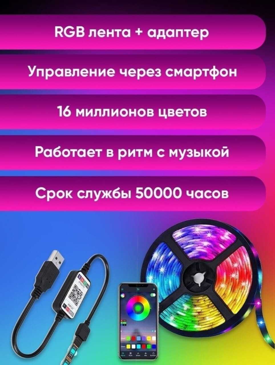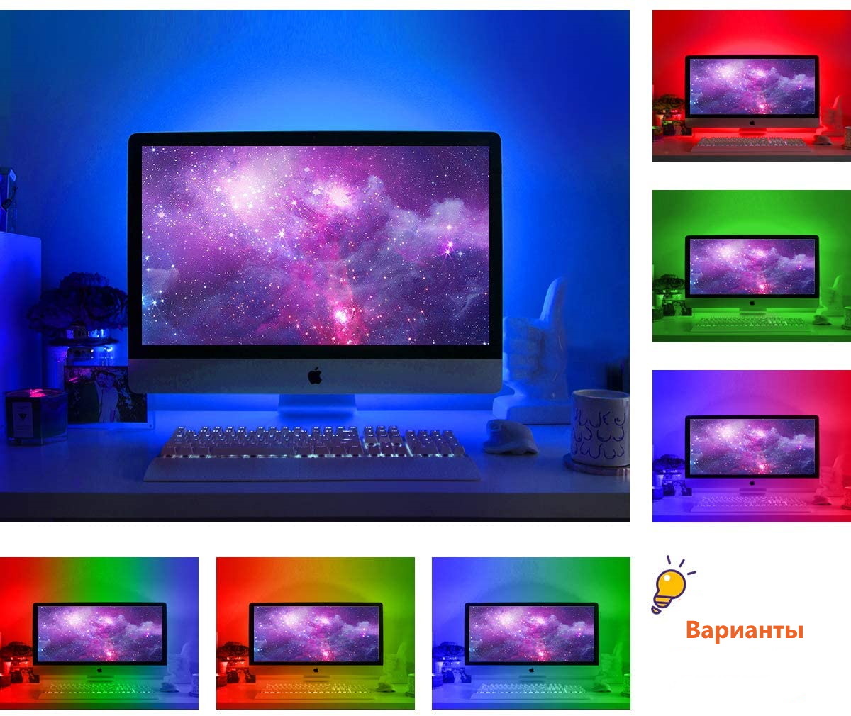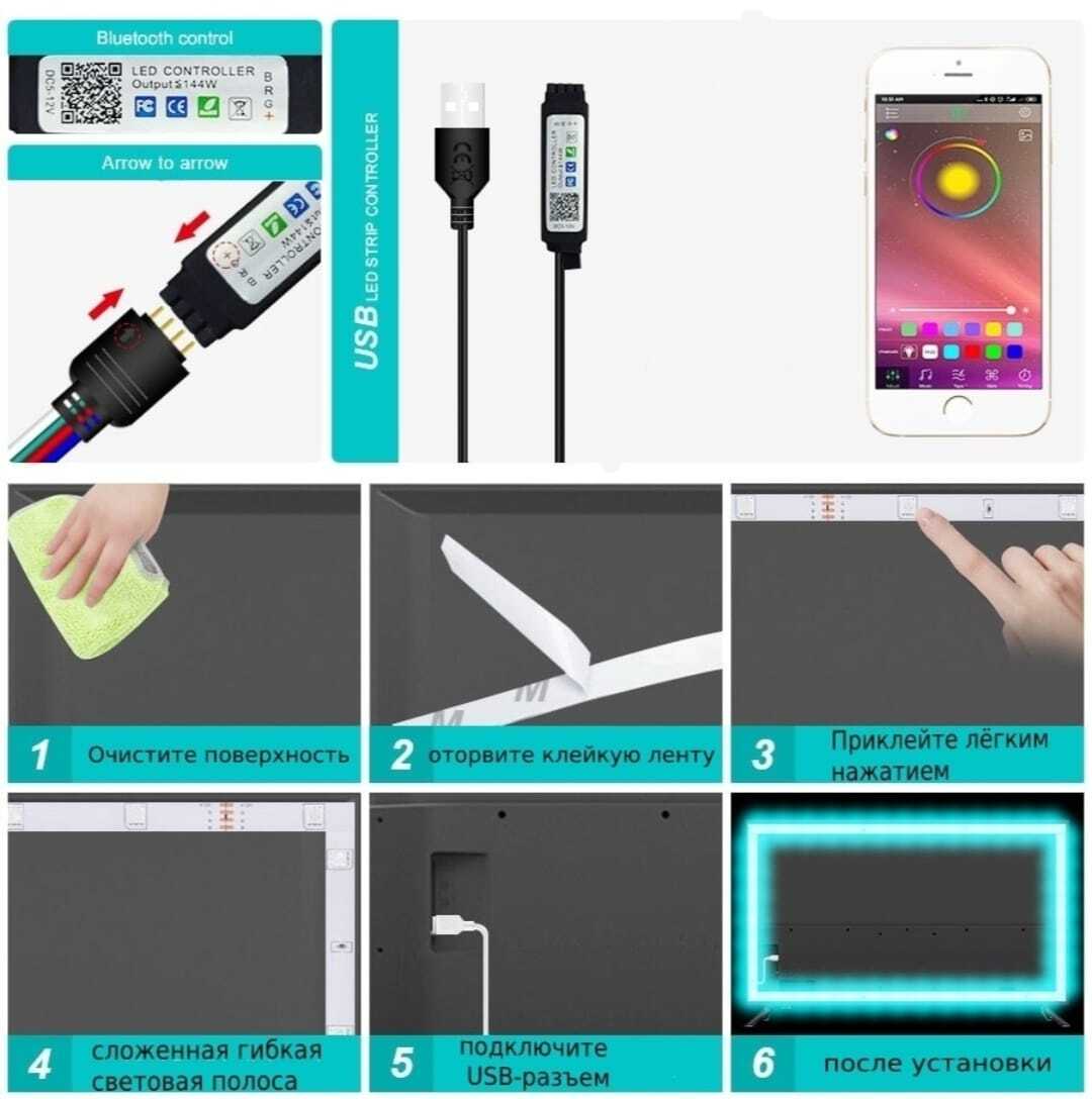Комплект для светодиодной подсветки 1м, 5В, IP65, 60 LED/m USB RGB 1M