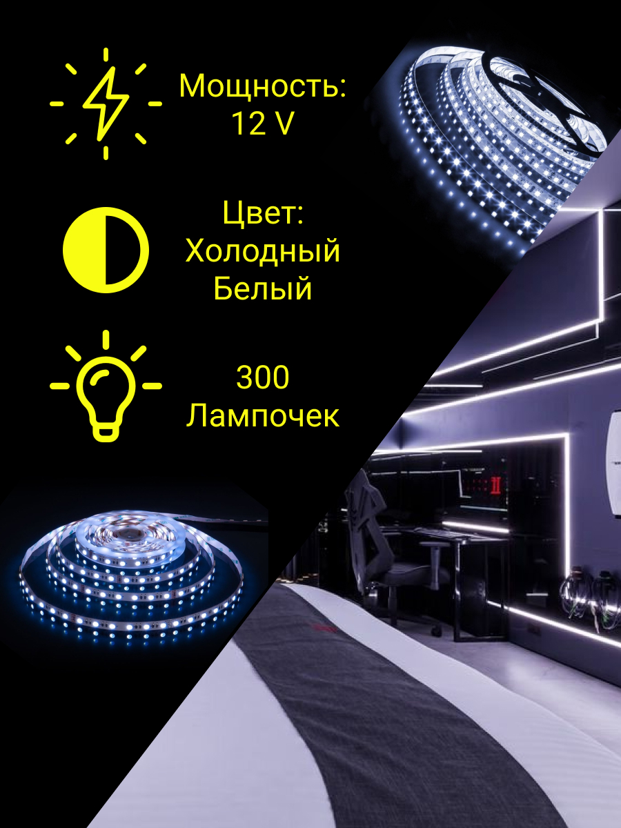 Светодиодная лента 5м, 12В, IP65, 60 LED/m 5м rgb, 5м, 12В, IP65