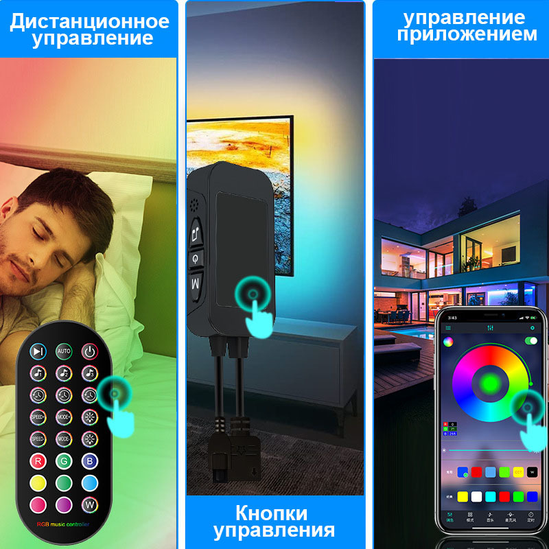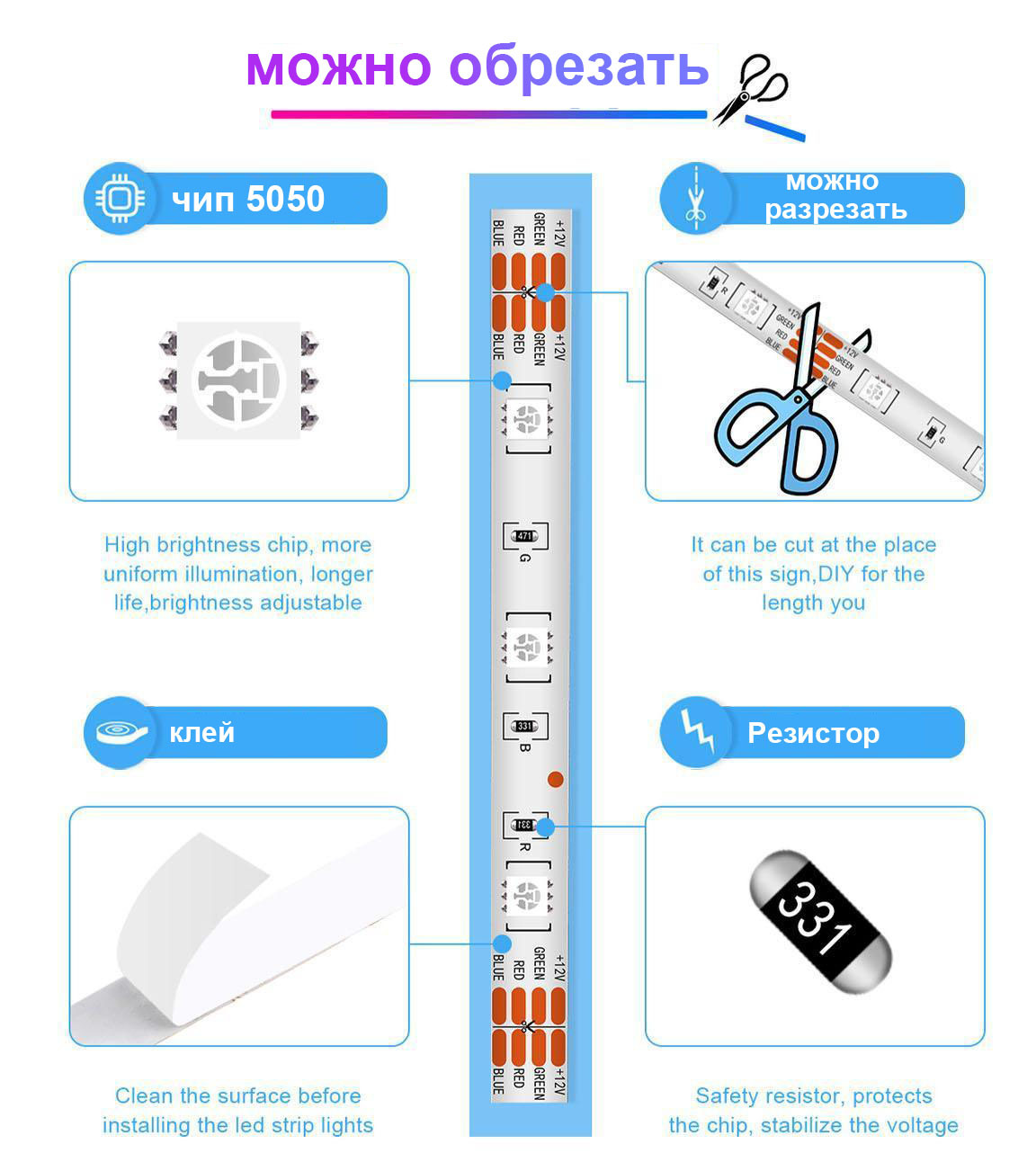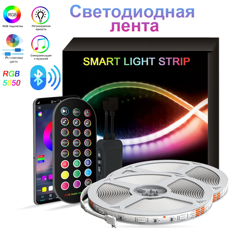 Светодиодная лента 5м, IP20, 18 LED/m SMD 5050 RGB LED Strip Light с Wi-Fi