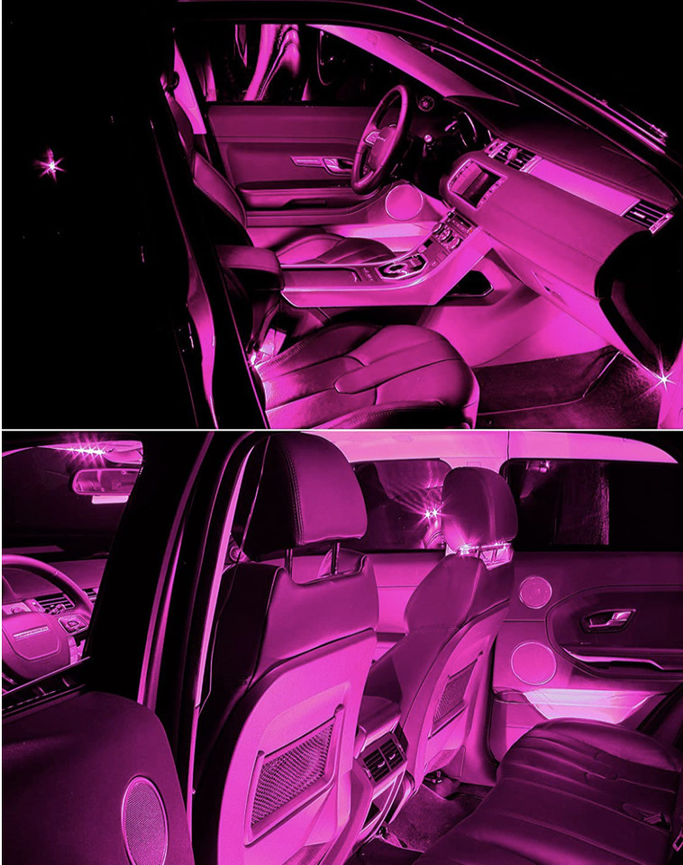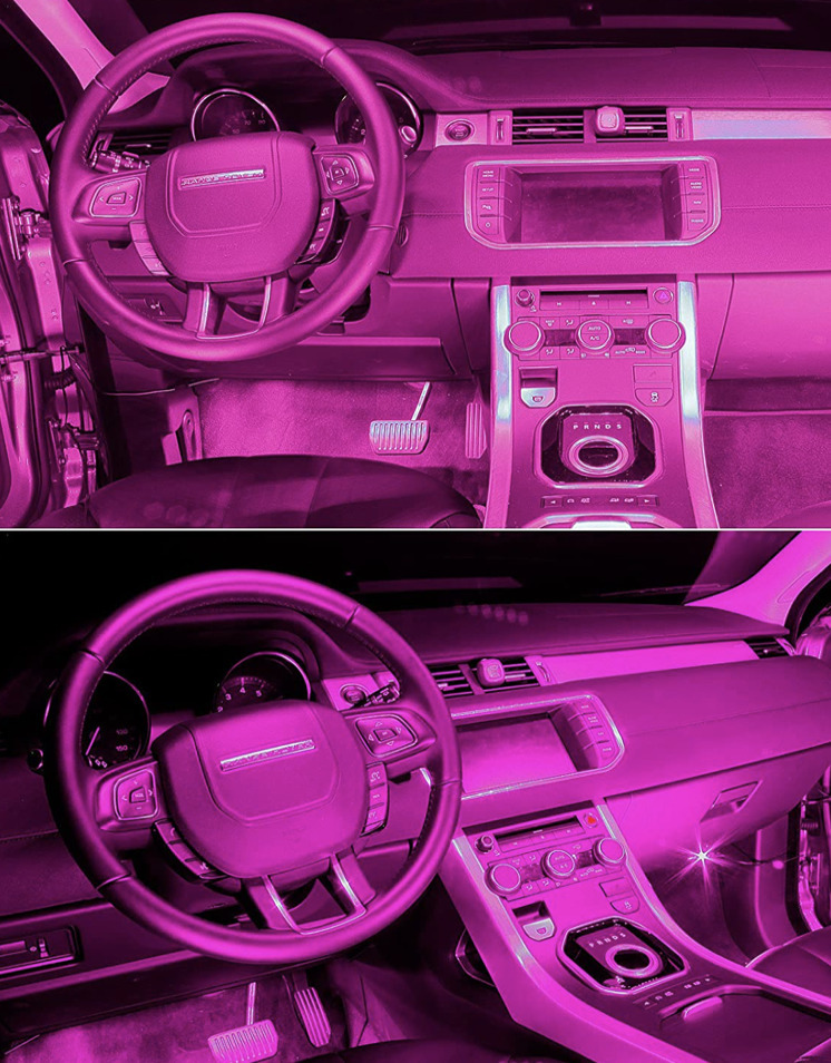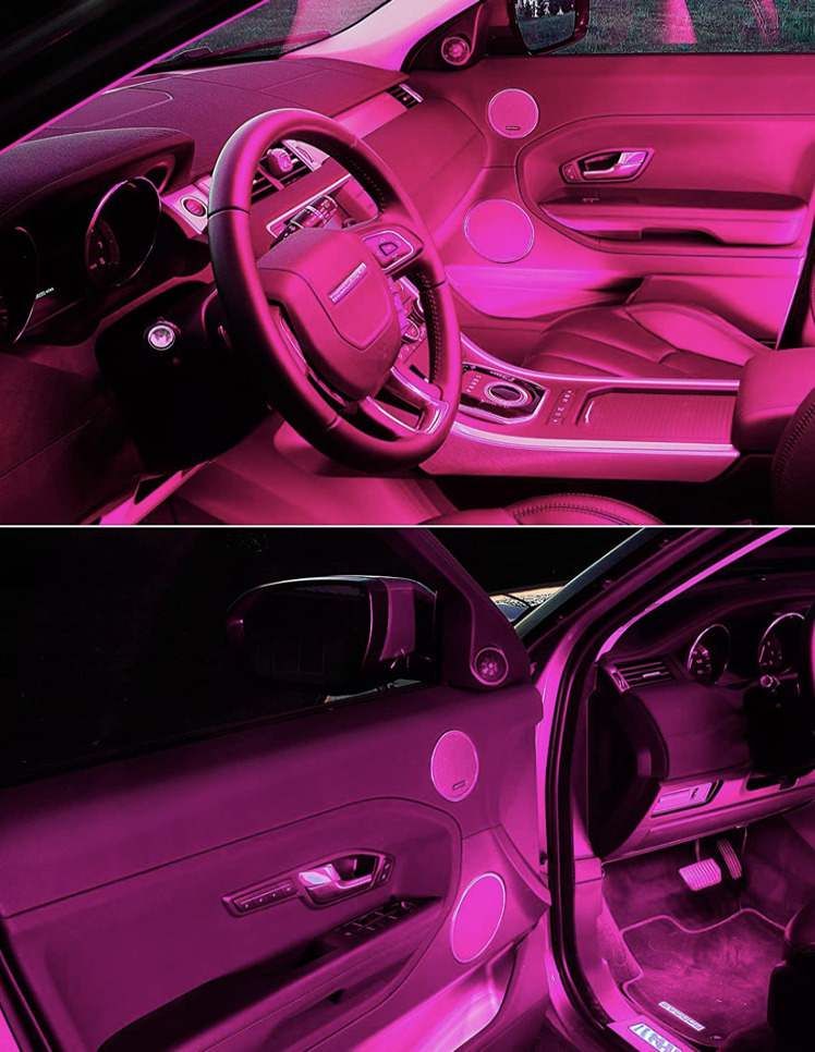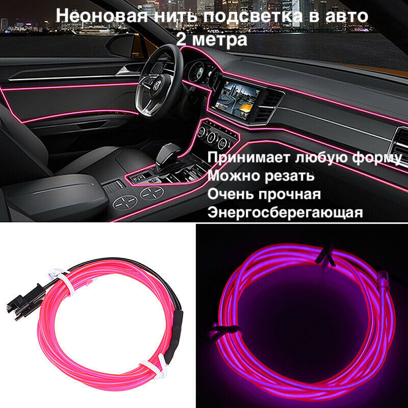 Неоновая нить для подсветки салона автомобиля, адаптер питания 12 В, 2 м, розовый