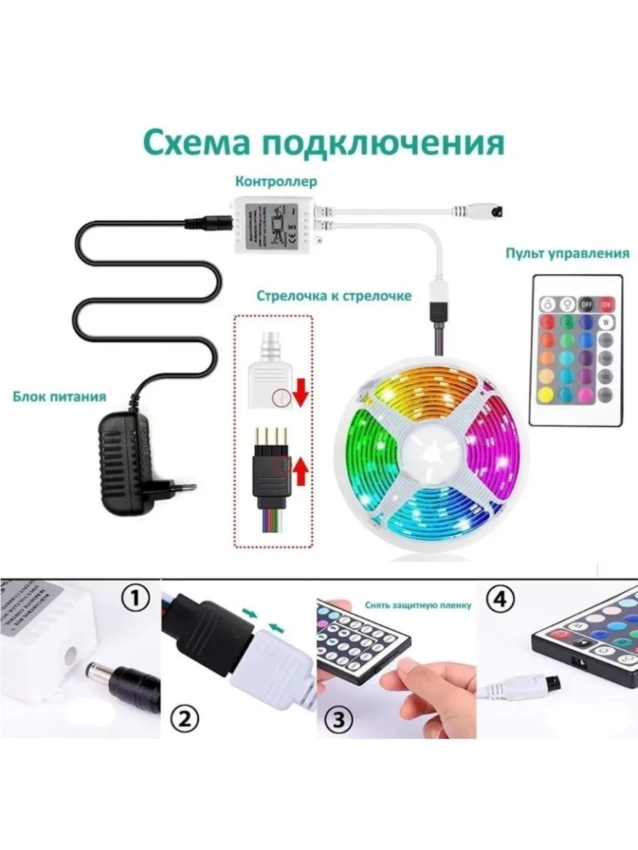 Светодиодная лента, Комплект для светодиодной подсветки 5м, 12В, IP65 LED Свет