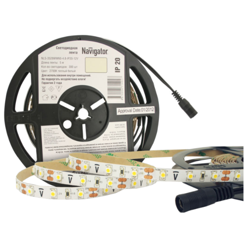 Светодиодная лента Navigator NLS-3528WW60-4.8-IP20-12V R5 5 м