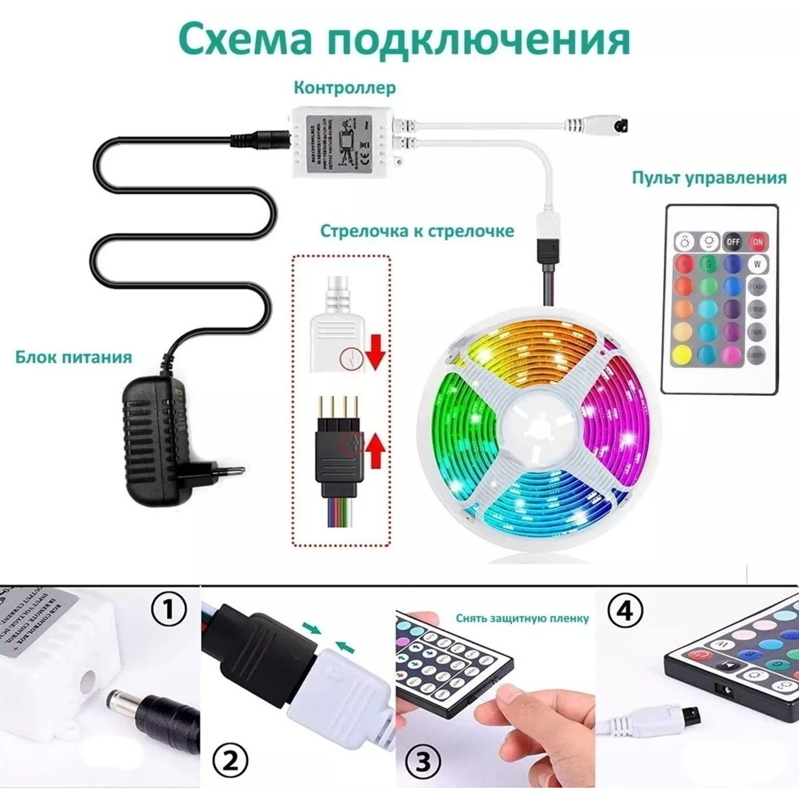 Уцененный товар Комплект для светодиодной подсветки, Светодиодная лента 5м, 5В, IP65 LED4