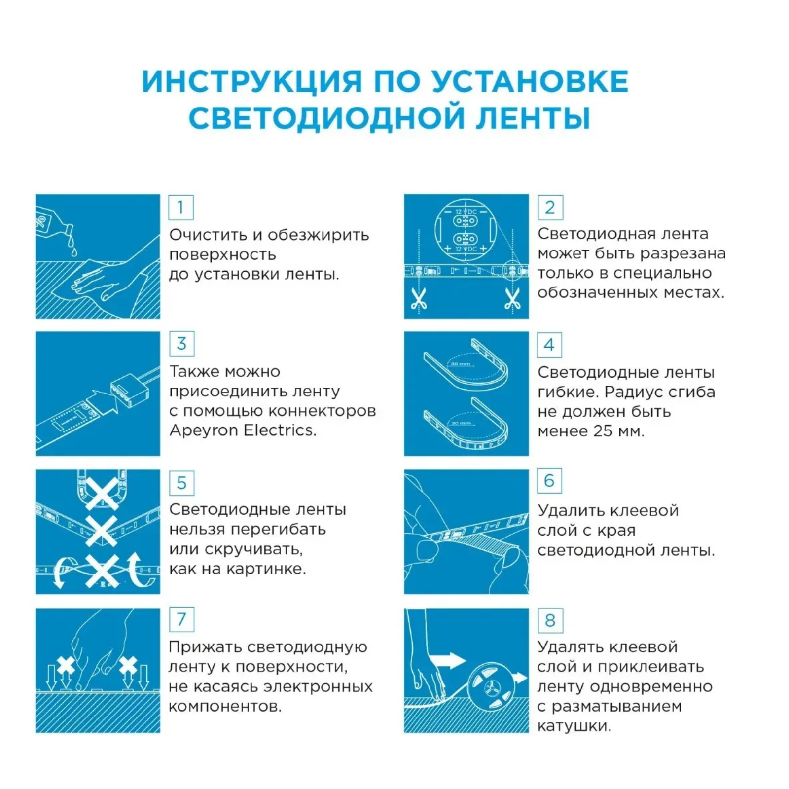 Комплект для светодиодной подсветки, Светодиодная лента 5м, IP68, 60 LED/m SMD5050