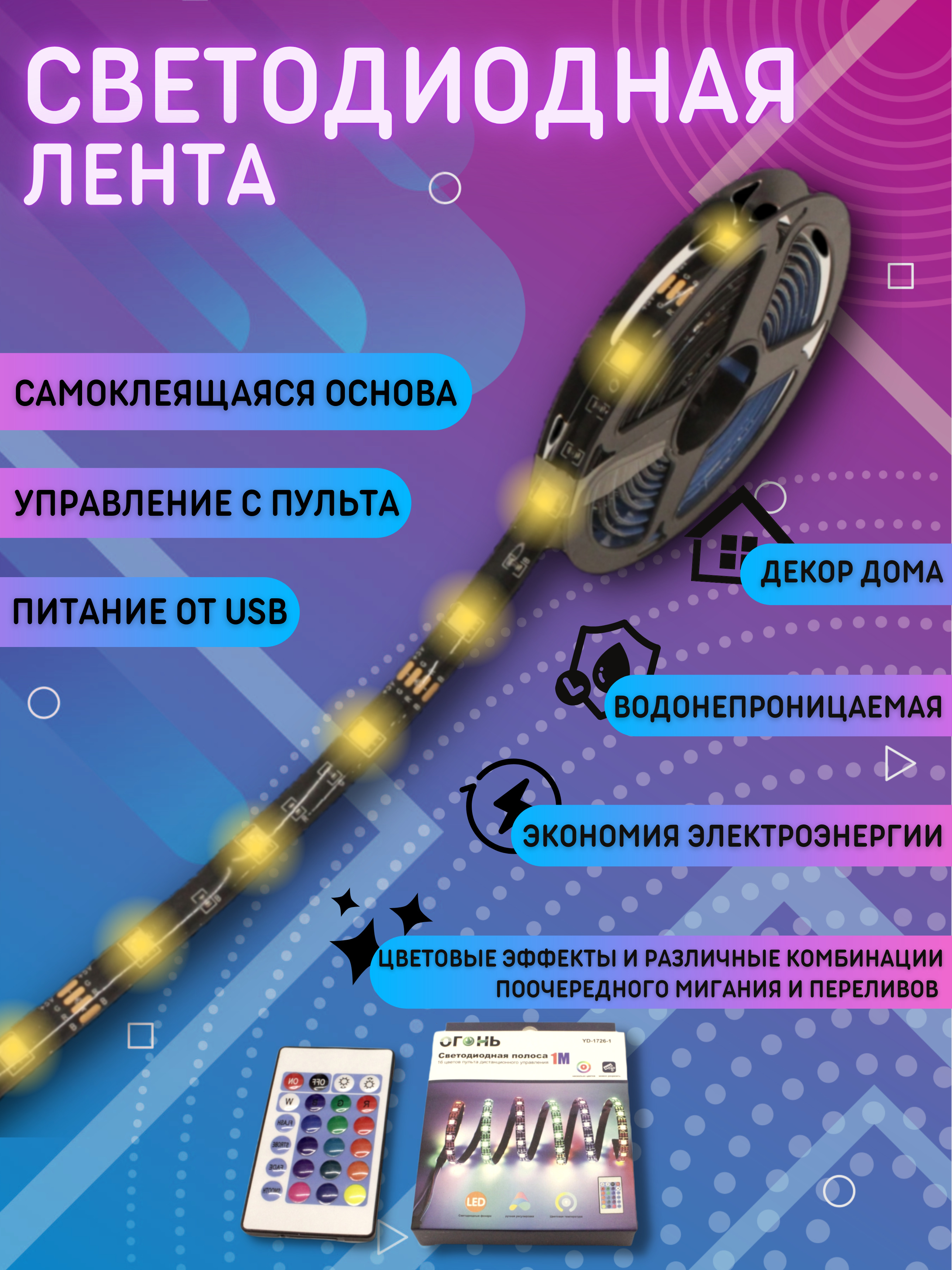 Светодиодная лента 1м, IP65 Светодиодная полоса YD-1726-1 1 метр